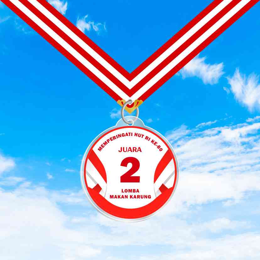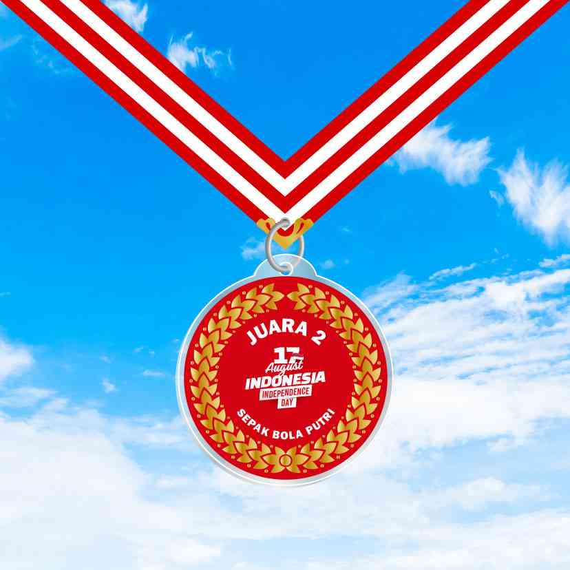 Desain medali ini lebih sederhana namun tetap meriah, dengan ilustrasi ikon kemerdekaan seperti bendera dan angka 17 yang ikonik. Sangat cocok digunak...