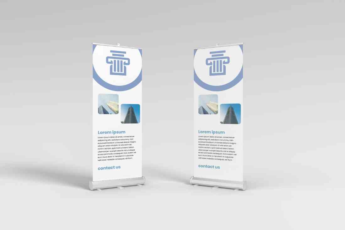 This sleek and sophisticated banner design combines minimalist elements with a modern, professional look. The subtle icon of a classical column in blu...
