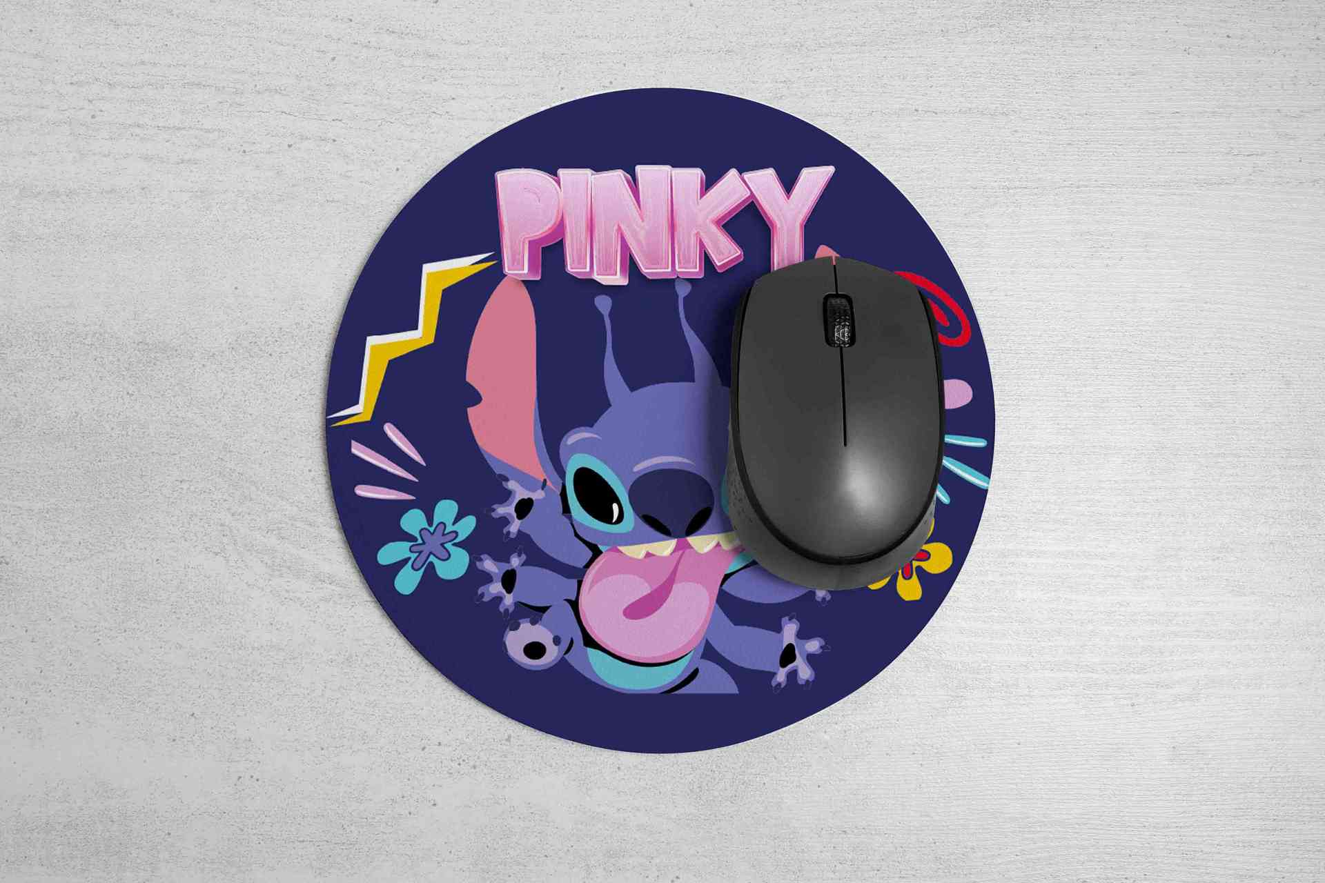 Mousepad ini menghadirkan karakter Stitch dalam pose ekspresif dan penuh semangat, dipadukan dengan latar warna navy dan aksen grafis warna-warni sepe...