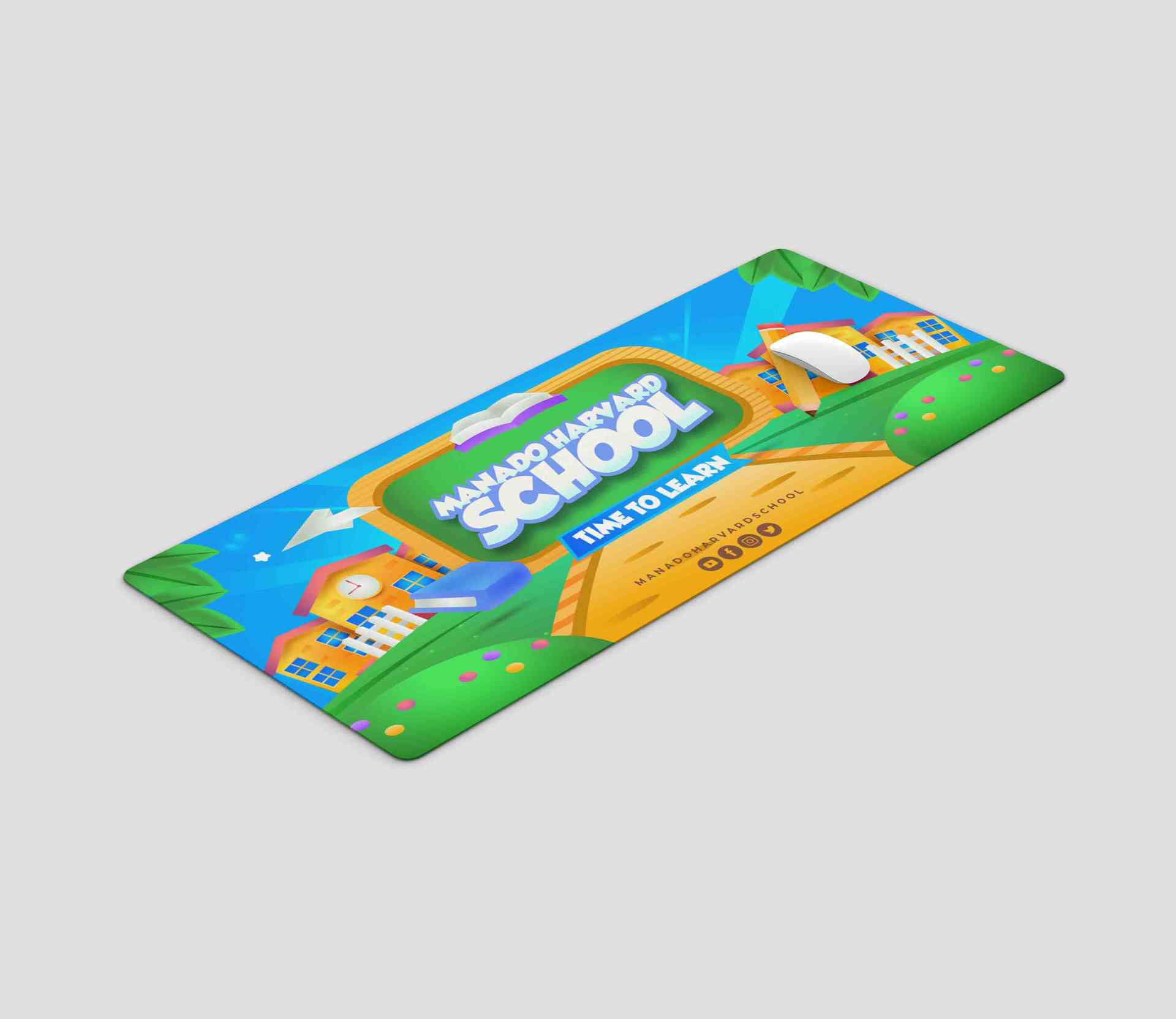 Mousepad panjang ini menghadirkan desain penuh warna dan semangat belajar dengan latar pemandangan sekolah yang ceria. Teks “MANADO HARVARD SCHOOL” di...