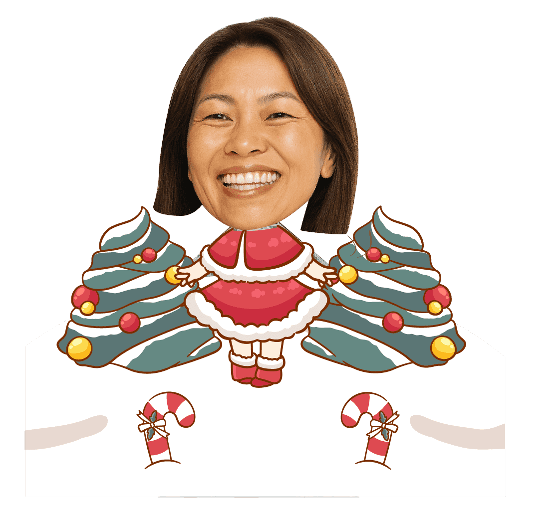 Akrilik Goyang Goyang Tema Santa Perempuan menampilkan karakter perempuan bergaya chibi mengenakan kostum Santa berwarna merah dengan aksen bulu putih...