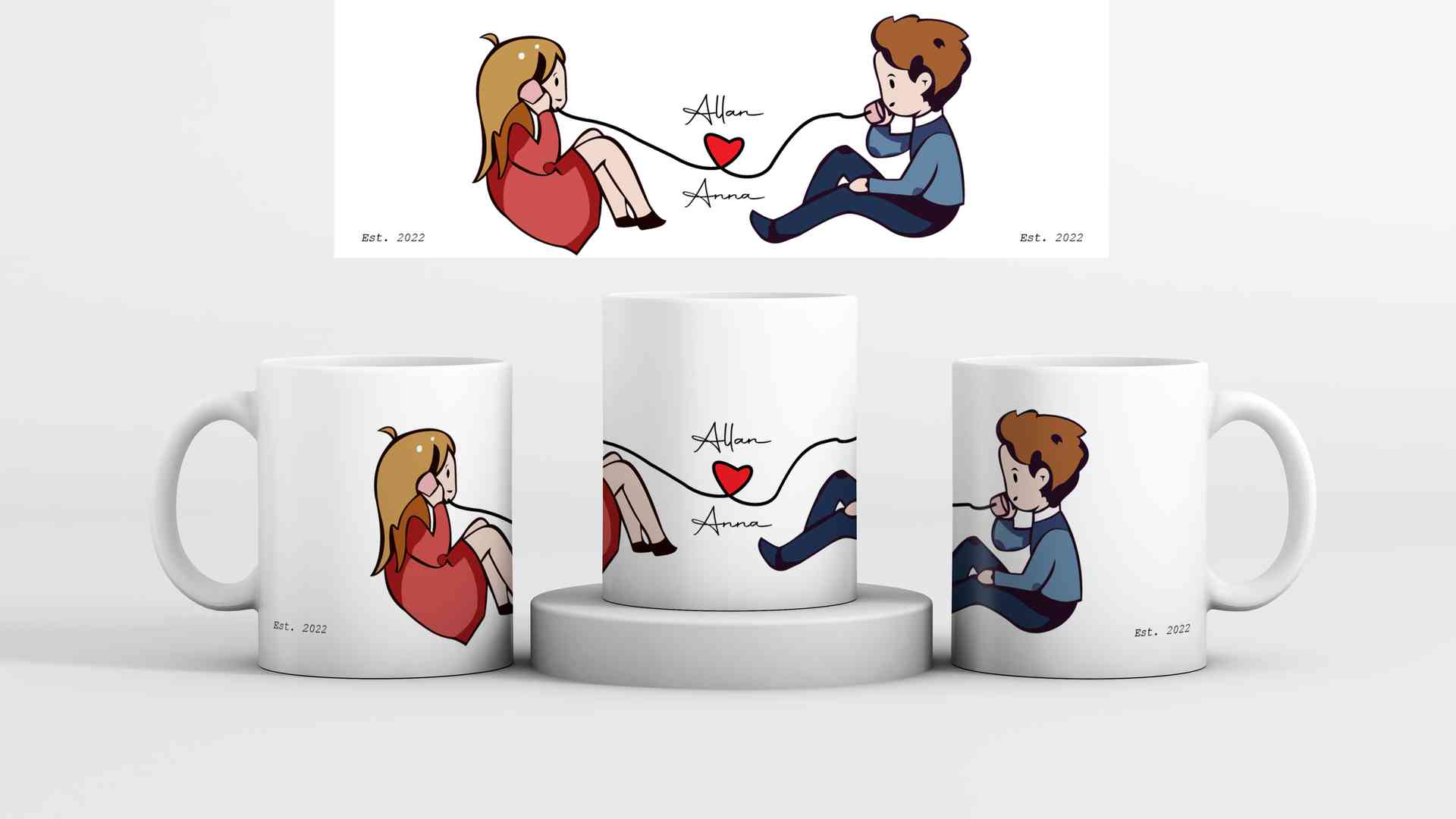 Mug couple ini memiliki desain yang romantis dan personal, cocok untuk pasangan yang ingin mengabadikan momen spesial mereka. Mug ini menampilkan ilus...