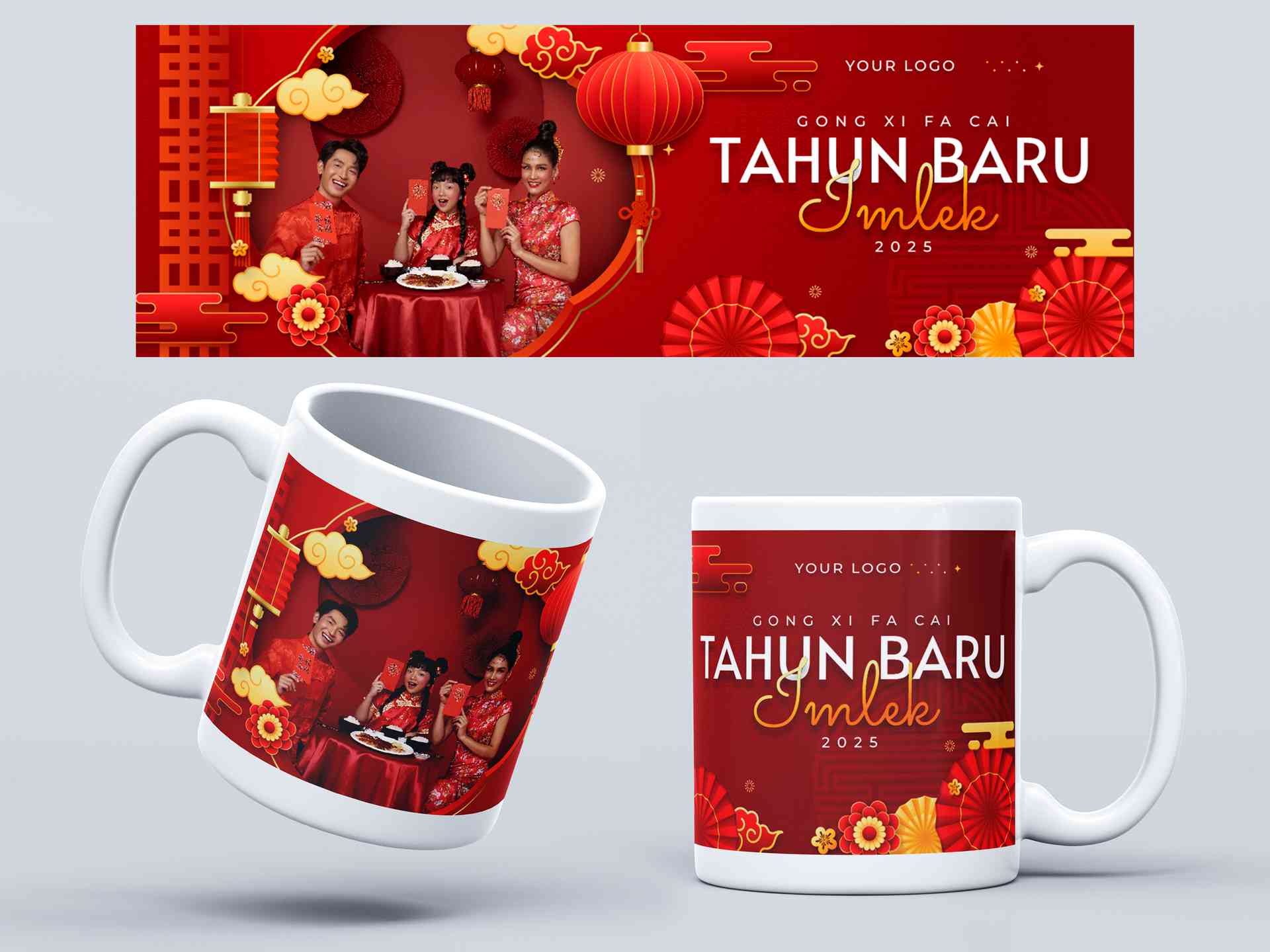 Mug dengan tema Shio Ular dan latar belakang putih dengan tambahan ornamen imlek berwarna merah tidak hanya berfungsi sebagai souvenir, tetapi juga se...
