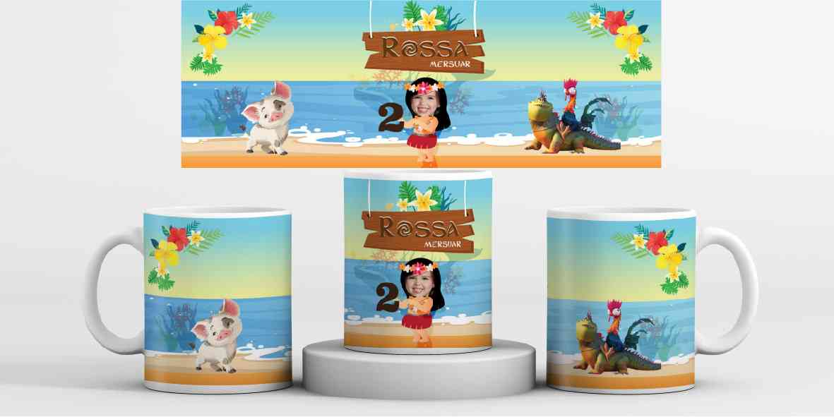 Mug souvenir ulang tahun ini mengusung tema Moana, menghadirkan nuansa petualangan yang menyegarkan di tengah lautan. Di bagian depan mug, terlihat Mo...