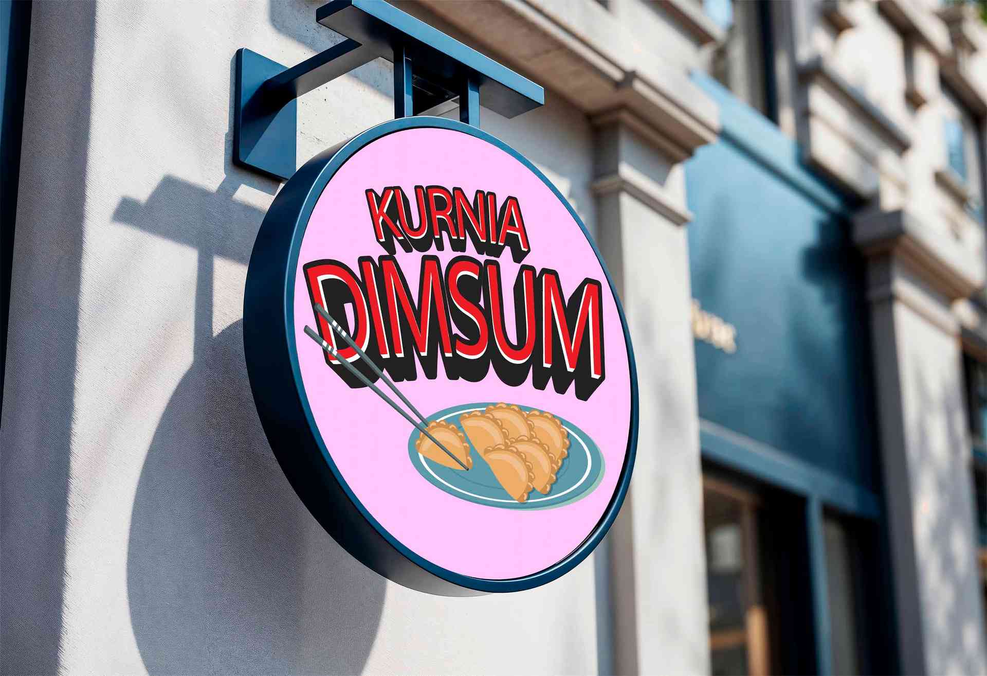 Neon box ini menampilkan desain logo “KURNIA DIMSUM” dengan latar belakang pink cerah yang memancarkan keceriaan dan menggugah selera. Ilustrasi sepir...