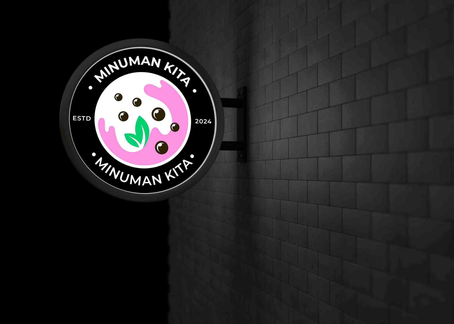 Neon box bulat ini menampilkan desain logo Minuman Kita dengan background hitam elegan yang membuat logo tampil lebih menonjol saat malam hari. Di bag...
