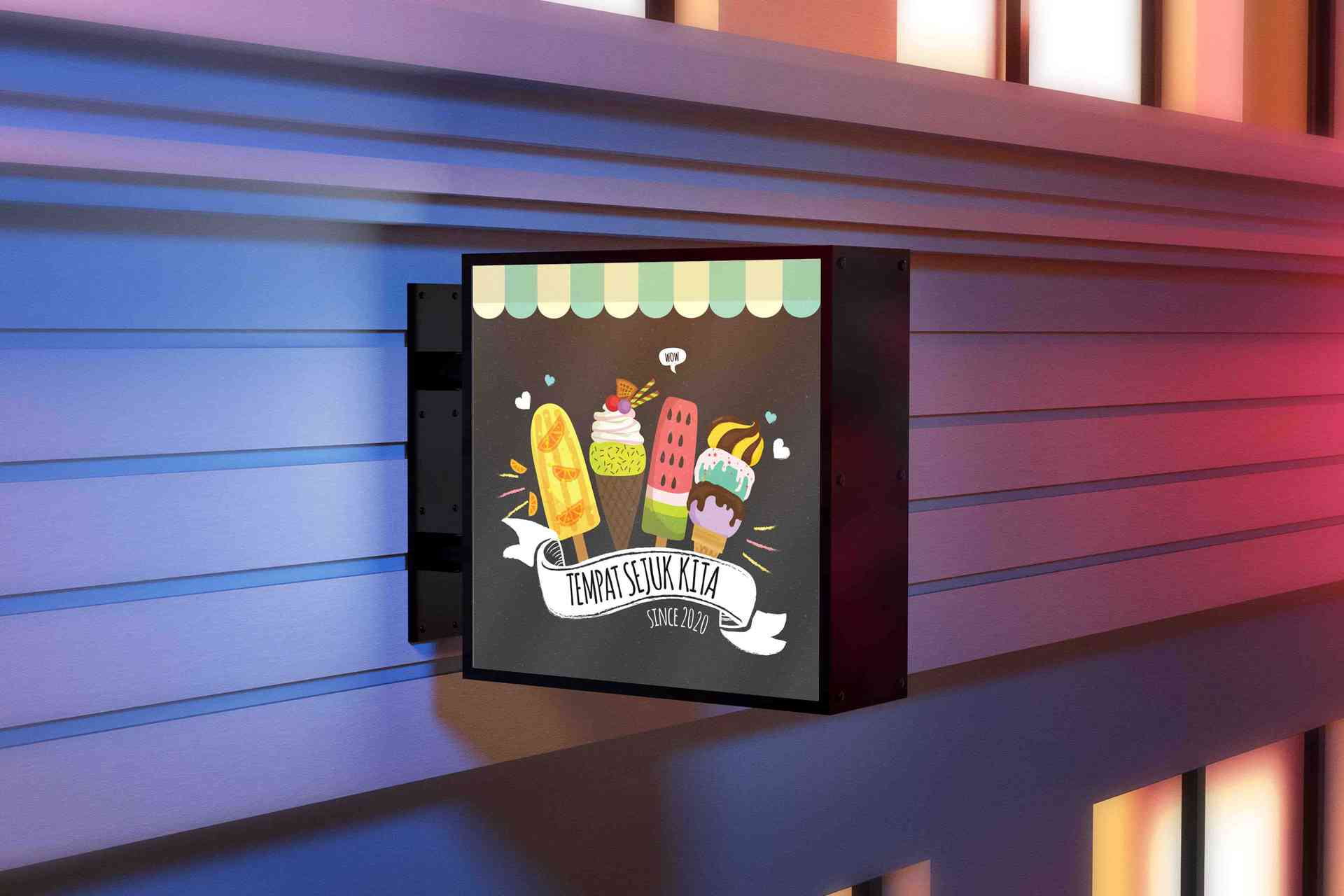 Neon box ini menampilkan desain ilustrasi es krim berbagai bentuk yang menggemaskan, mulai dari ice cream stick jeruk, cone green tea strawberry, es k...