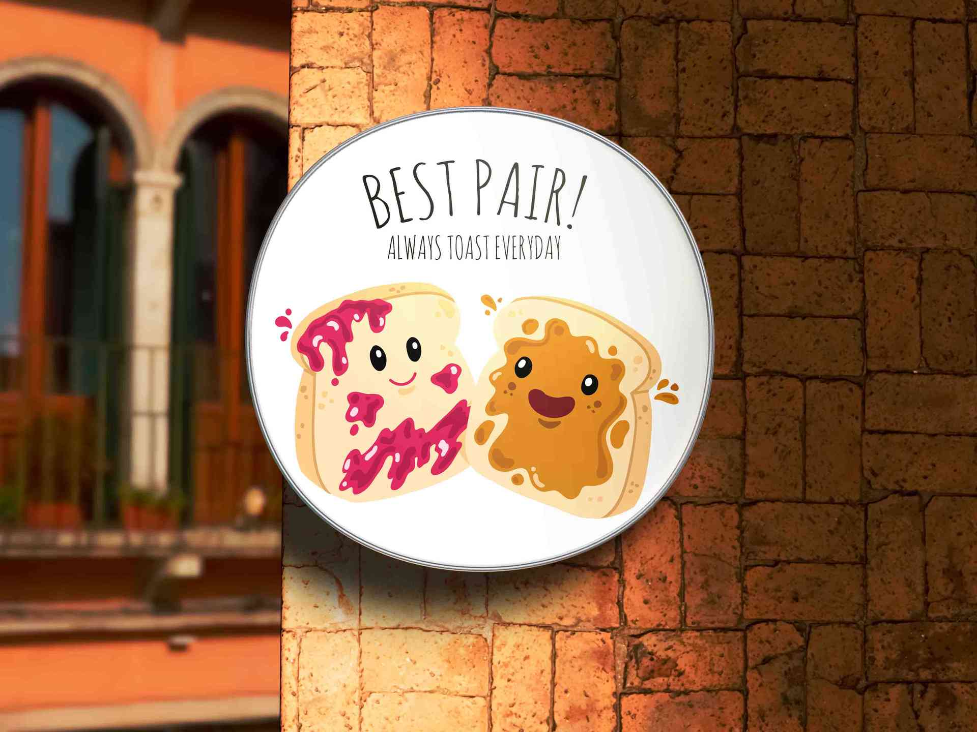 Desain neon box ini menampilkan dua karakter roti imut: satu dengan selai stroberi, dan satu lagi dengan selai kacang—keduanya tersenyum ceria dengan...