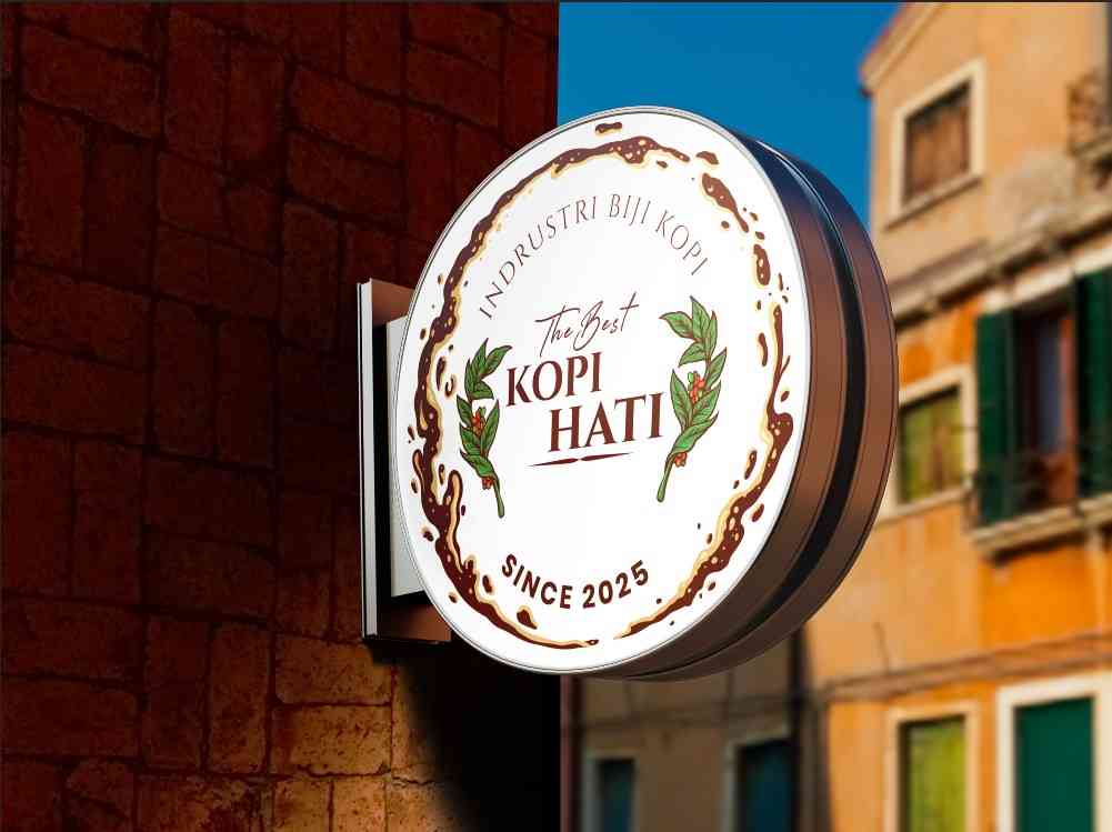 Neon Sign Box ini mengusung gaya heritage klasik dengan tampilan emas yang berani dan mencolok. Ikon biji kopi besar di tengah dikelilingi oleh ilustr...