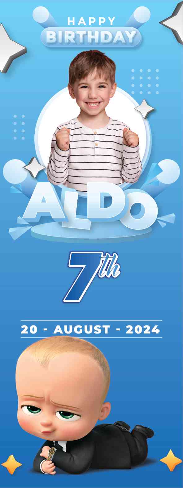 "Dalam suasana yang penuh dengan senyuman dan keceriaan, kami mempersembahkan banner spesial untuk merayakan ulang tahun sang Baby Boss yang tercinta!...