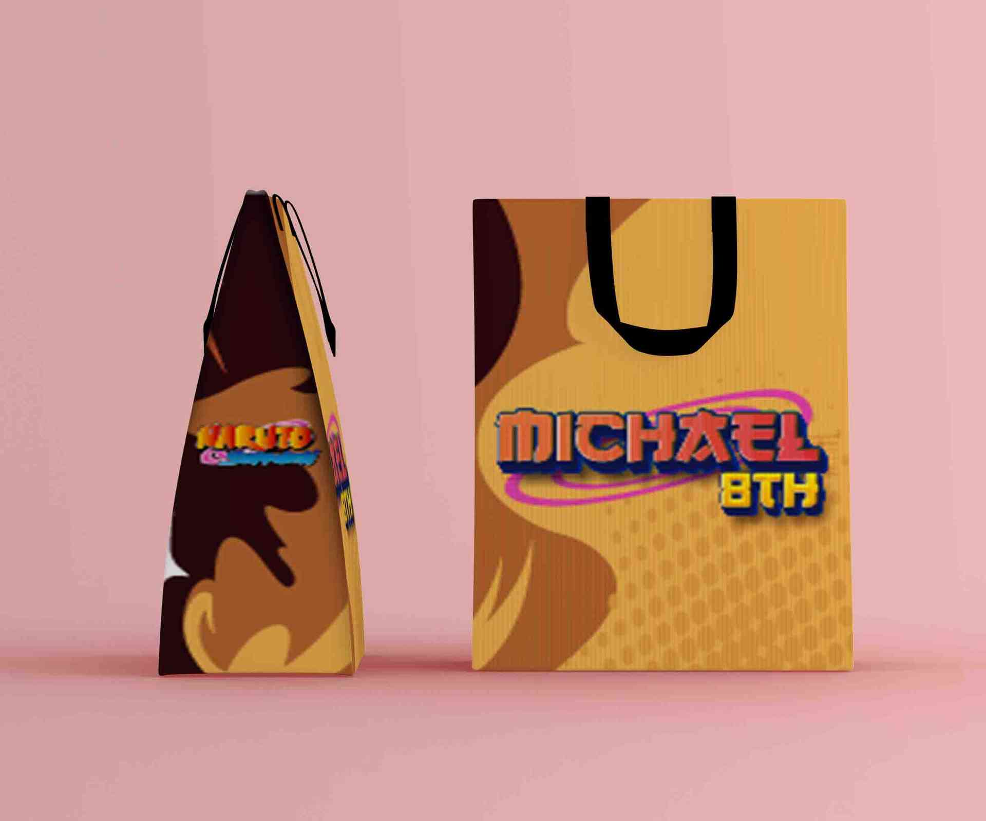 Paper bag ulang tahun ini mengusung tema Naruto Shippuden dengan ilustrasi karakter utama bergaya siluet kartun melakukan pose tangan khas ninjutsu, d...