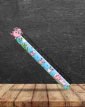 Penggaris ini hadir dengan tema Yamper berwarna hijau cerah yang memancarkan kesan segar dan playful. Di bagian kiri terdapat ilustrasi kepala Yamper yang lucu dengan pipi merah khasnya, sementara di sepanjang badan penggaris menampilkan beberapa pose karakter Yamper yang sedang duduk, berlari, dan tersenyum dengan latar padang rumput hijau serta bunga pink yang manis. Tulisan “Federica love Yamper” dengan font putih hijau dihiasi bunga pink kecil, memberikan sentuhan personal yang menggemaskan. Desain ini cocok dijadikan koleksi alat tulis anak sekolah, souvenir ulang tahun, ataupun merchandise bagi penggemar karakter Yamper yang menginginkan sentuhan ceria dalam aktivitas belajar mereka.