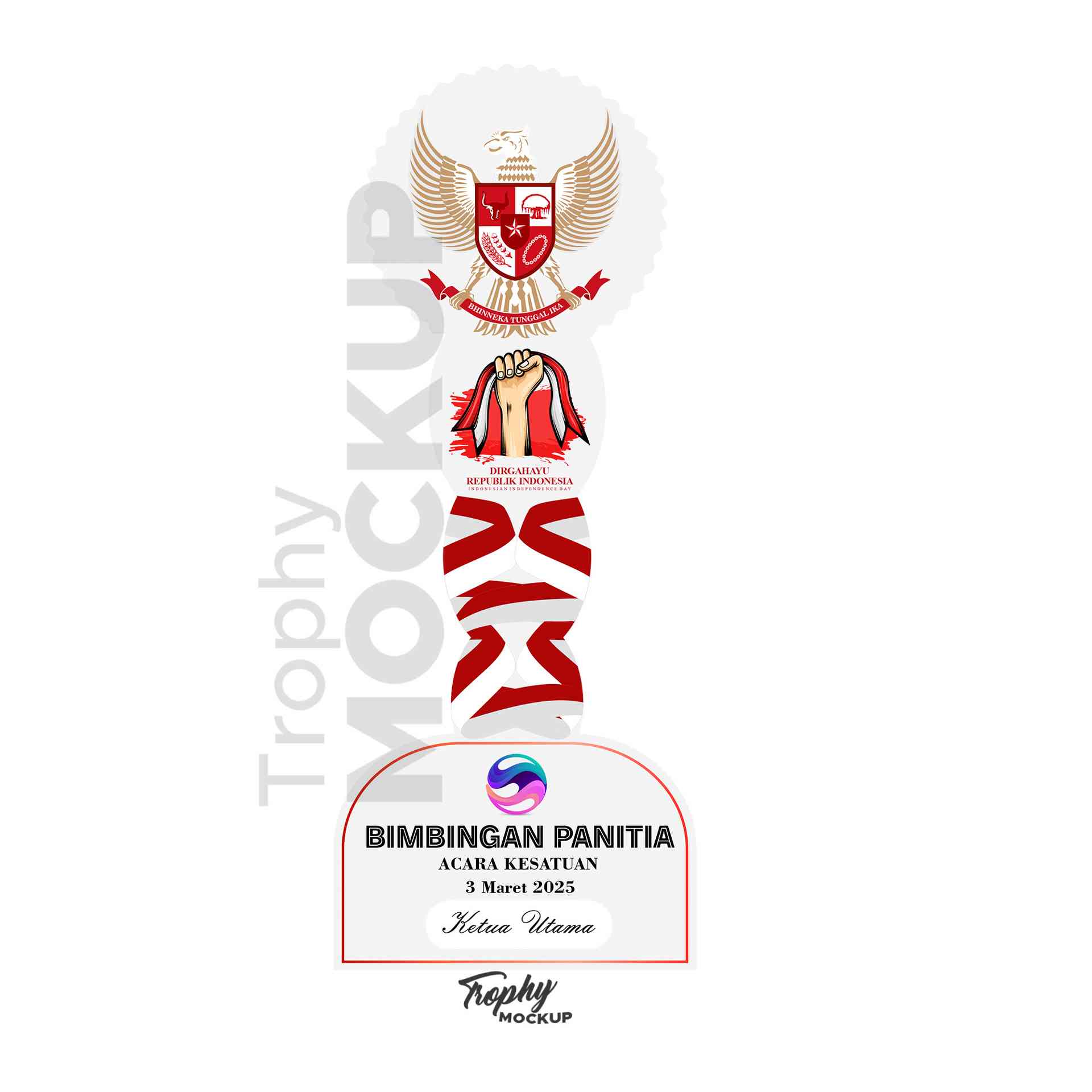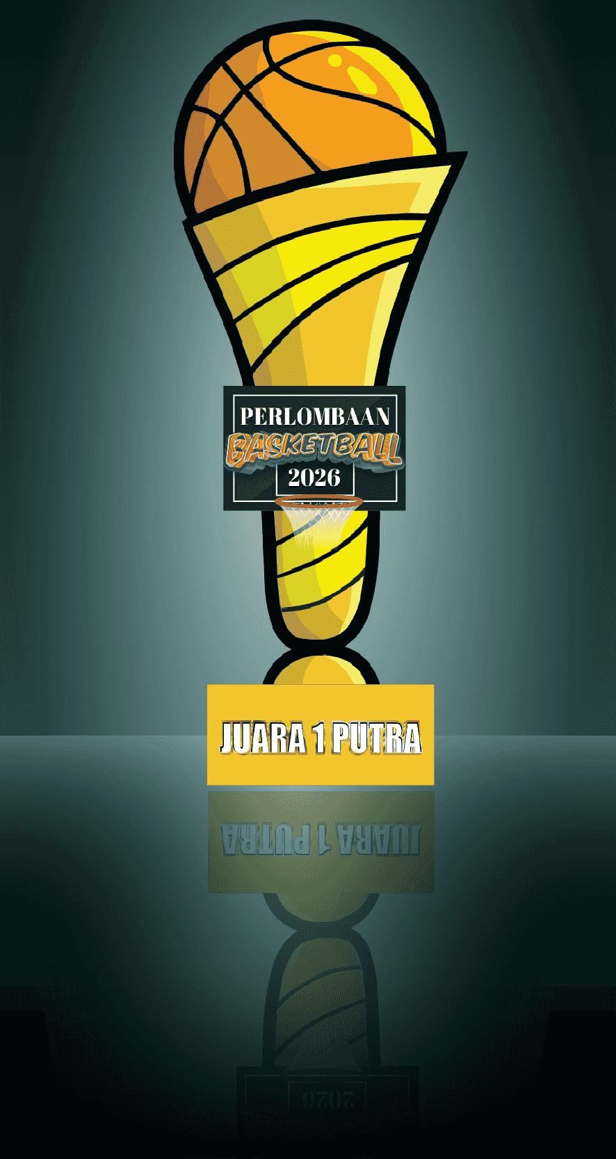 Desain ini merupakan plakat penghargaan berbentuk piala yang dibuat untuk perlombaan basket tahun 2026. Piala memiliki bentuk unik yang menggabungkan...