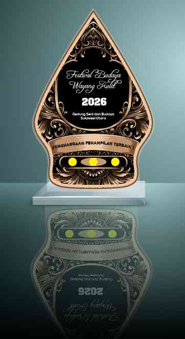 Desain ini menampilkan sebuah trofi penghargaan dengan bentuk menyerupai gunungan dalam seni wayang kulit, yang melambangkan kebijaksanaan dan perjala...