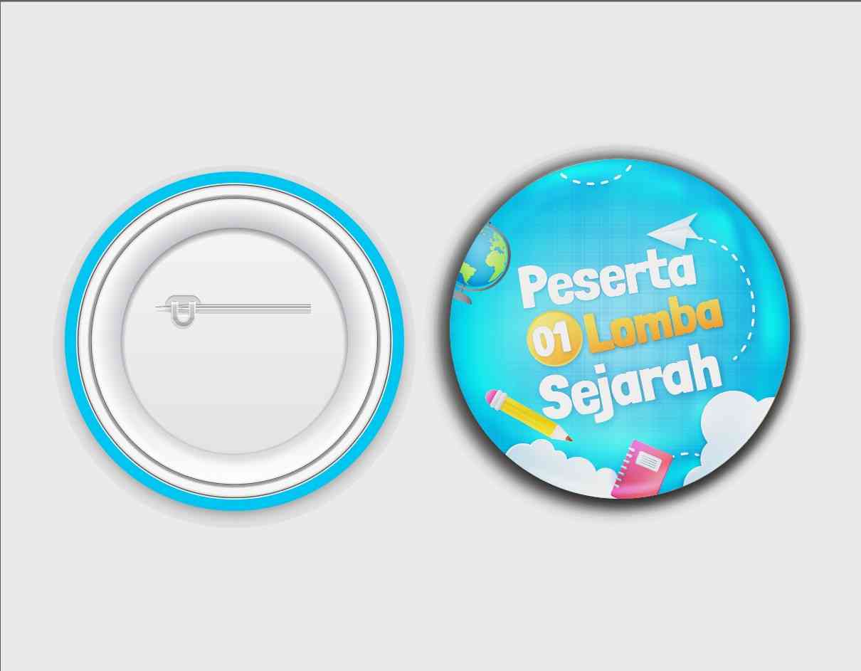 Pin peniti ini didesain dengan tema pendidikan, cocok untuk acara lomba sejarah. Latar belakang berwarna biru cerah dengan elemen-elemen pendidikan se...