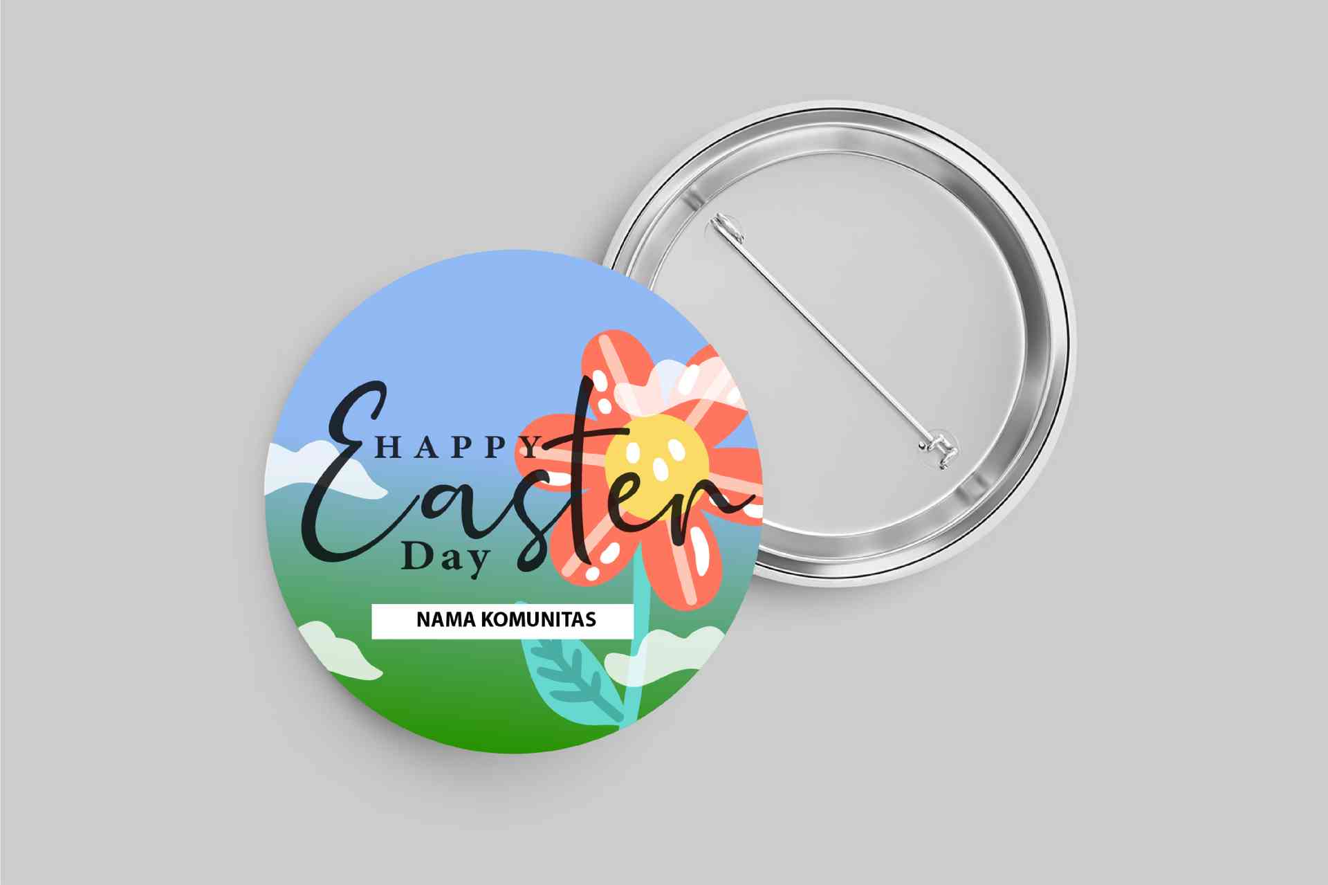Pin peniti bundar bertema Happy Easter Day ini hadir dengan desain ceria dan penuh warna. Menampilkan ilustrasi bunga besar berwarna cerah di latar hi...