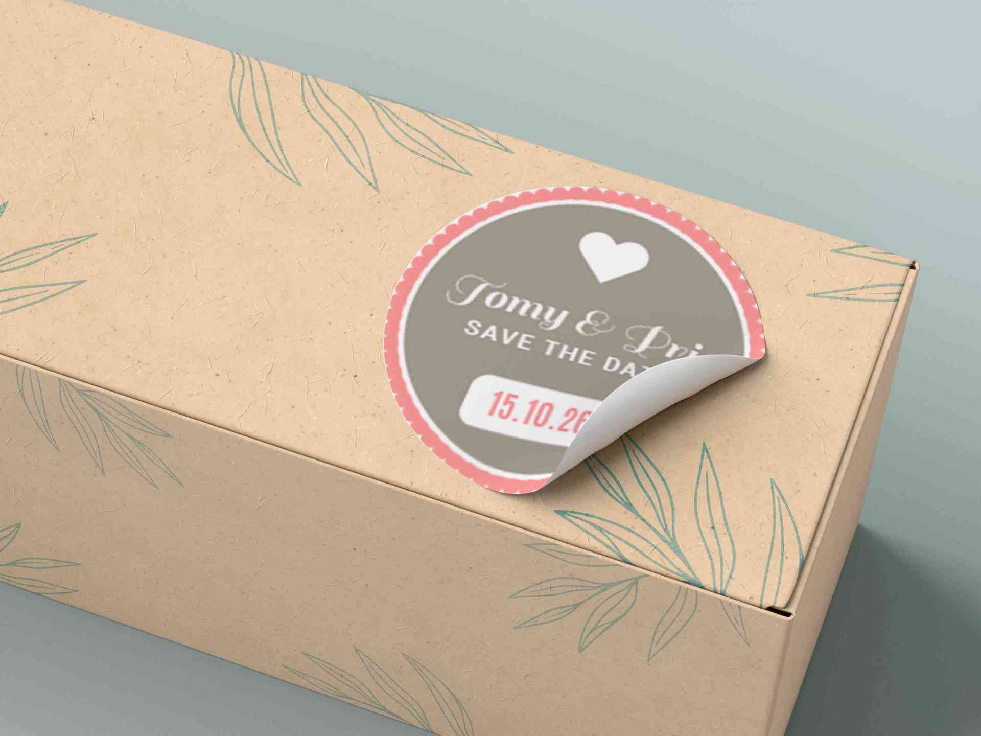Stiker bulat ini menonjolkan nuansa hangat dan elegan dengan kombinasi warna coklat muda sebagai latar utama dan aksen pink coral pada bagian tepi ren...