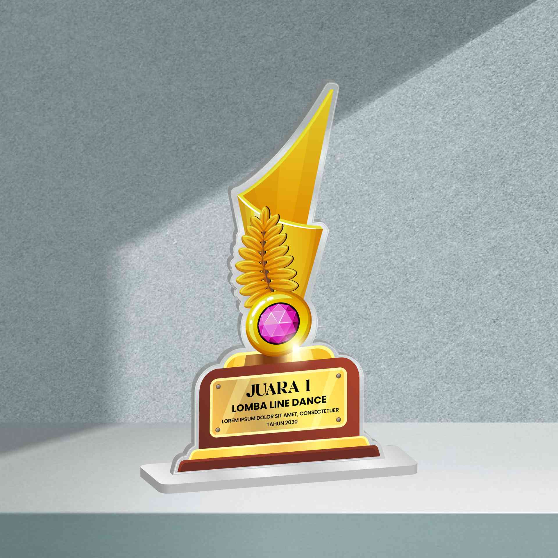 Plakat akrilik ini memiliki desain yang elegan dan modern, dengan kombinasi warna emas yang mencerminkan kemewahan serta prestise penghargaan yang dib...