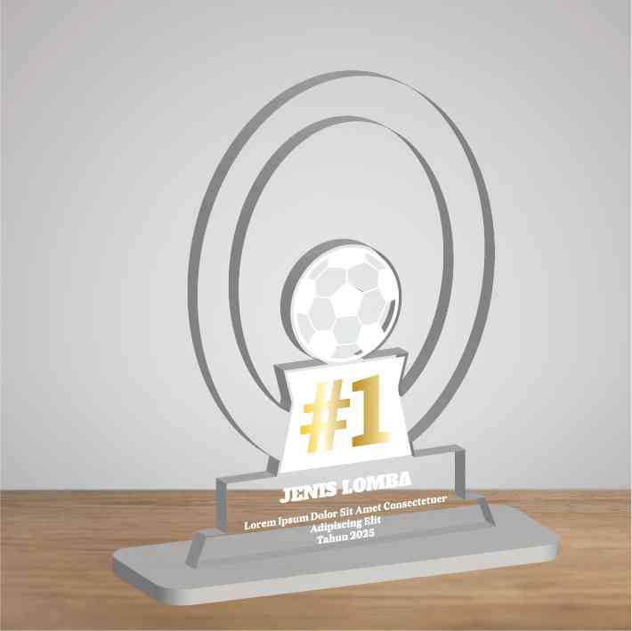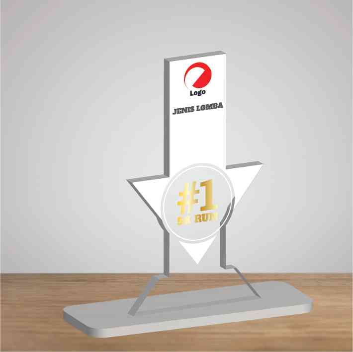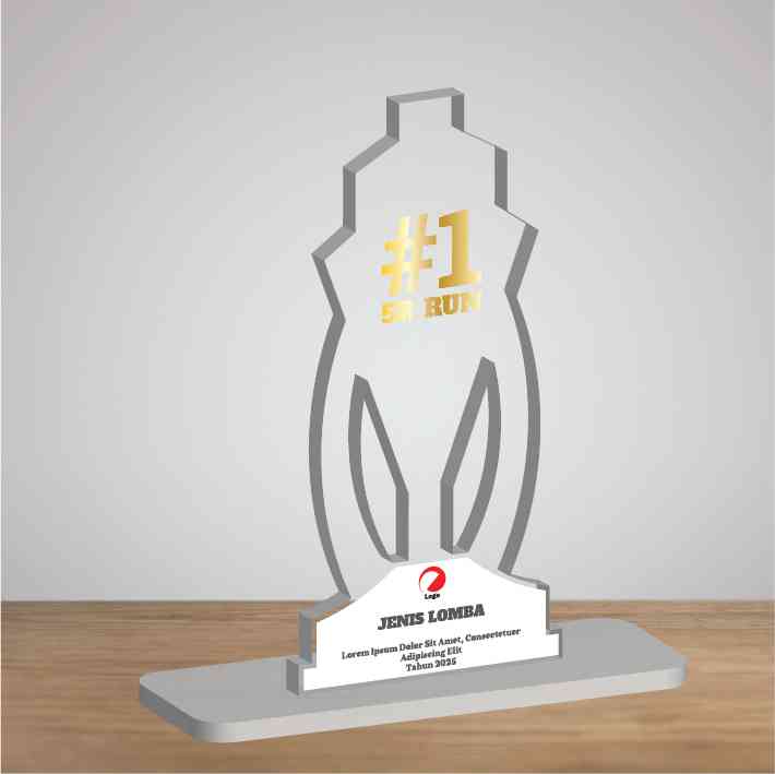 Plakat penghargaan lari marathon ini dengan desain elegan berbahan akrilik transparan, menampilkan bentuk unik dengan elemen grafis modern. Diberikan...