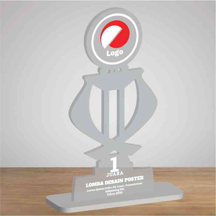 Plakat akrilik transparan dengan desain elegan dan aksen merah yang mencolok. Terbuat dari bahan akrilik berkualitas tinggi dengan bentuk unik dan potongan presisi, memberikan tampilan modern dan profesional. Cocok digunakan sebagai penghargaan dalam lomba, apresiasi prestasi, kenang-kenangan, atau acara perusahaan. Dapat dipersonalisasi dengan logo, teks, dan detail khusus sesuai kebutuhan.