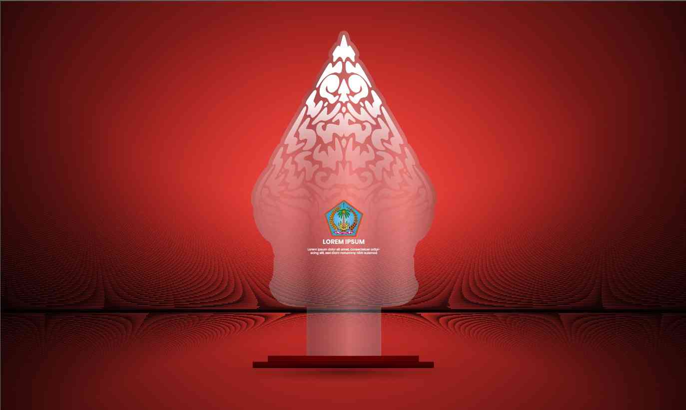 Plakat piagam penghargaan berbahan acrylic ini memiliki bentuk menyerupai gunungan wayang atau keris, menonjolkan ornamen etnik pada bagian atasnya de...