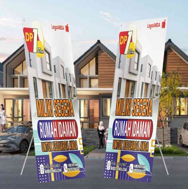 X BANNER promosi properti bergaya modern dan minimalis sebagai media promosi, menampilkan slogan “Miliki Segera Rumah Idaman untuk Keluarga Anda”. Des...