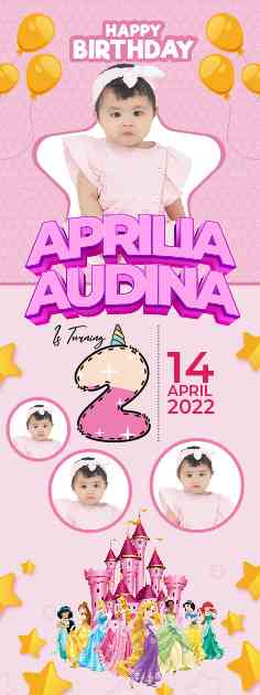 Spanduk berdiri ini adalah pintu gerbang menuju dunia dongeng yang memikat, di mana keajaiban dan keanggunan bertemu dalam perayaan ulang tahun seoran...