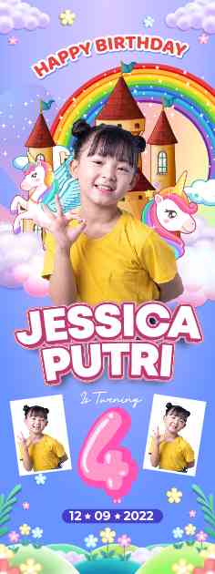 Mari merayakan ulang tahun dengan keajaiban dan pesona ala unicorn! Di dalam dunia yang penuh warna-warni ini, tamu-tamu akan disambut oleh dekorasi yang memukau, mulai dari balon berbentuk tanduk unicorn yang mengambang di udara hingga lapisan warna pelangi yang memenuhi ruangan. Sentuhan magis dari bunga-bunga berkilauan dan bendera-bendera berbentuk ekor unicorn akan menambahkan nuansa dongeng yang mengagumkan. Dengan meja yang dihiasi dengan detail-detail khas unicorn, seperti piring dan gelas bertema, serta kue ulang tahun yang dipenuhi dengan warna-warni dan kilauan, setiap detik ulang tahunmu akan dipenuhi dengan kegembiraan. Jangan lupa untuk menambahkan aktivitas-aktivitas kreatif seperti permainan mencari harta karun berbentuk tanduk unicorn atau menghias topi tanduk untuk menambah keseruan acara. Dengan tema unicorn yang mengagumkan ini, ulang tahunmu akan menjadi perayaan yang magis dan memikat bagi semua yang hadir!