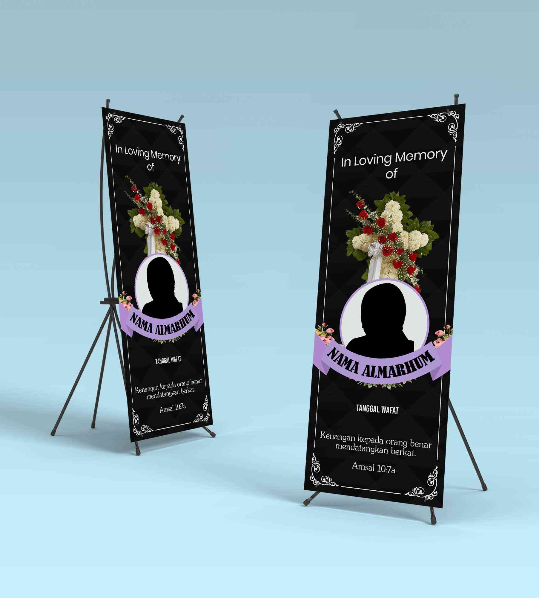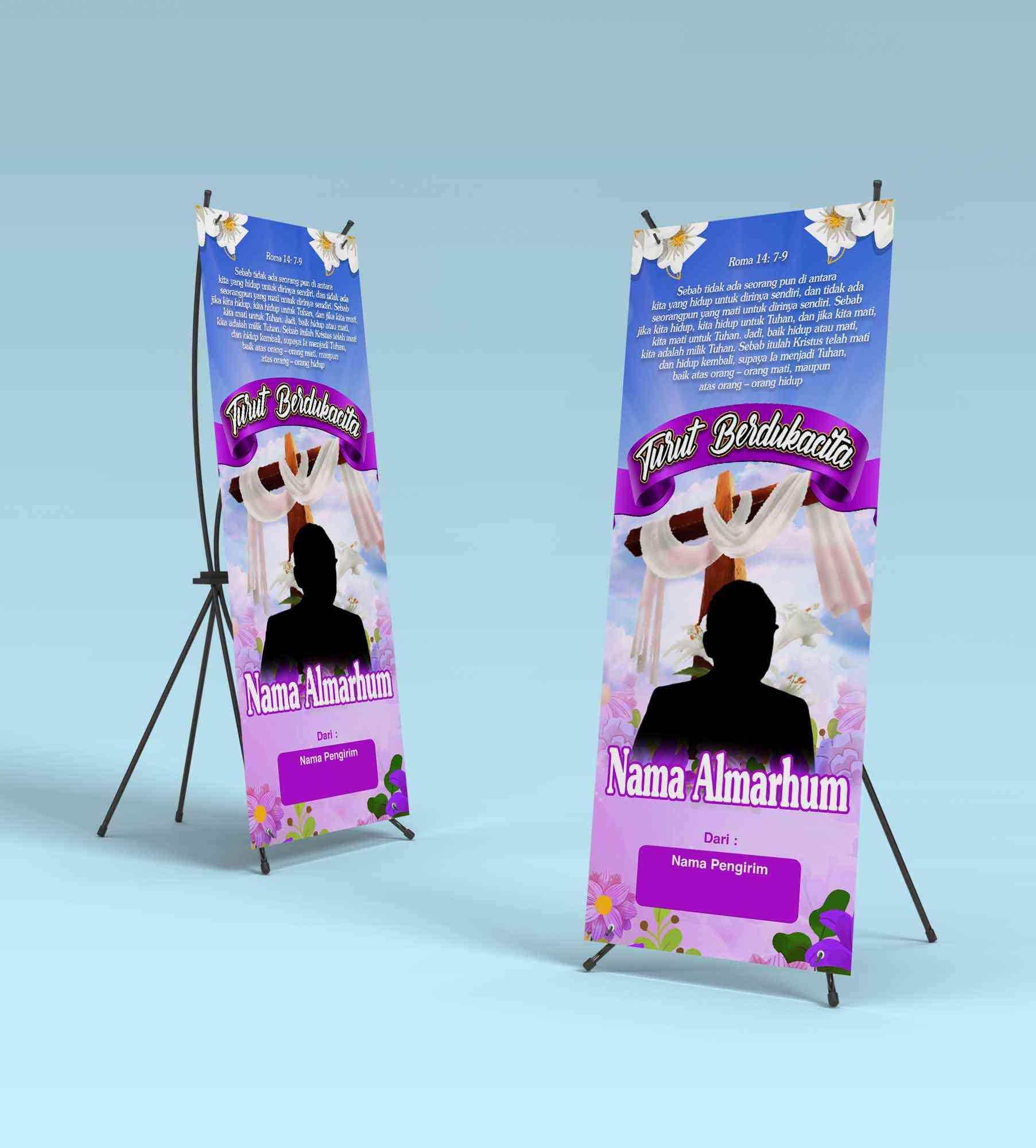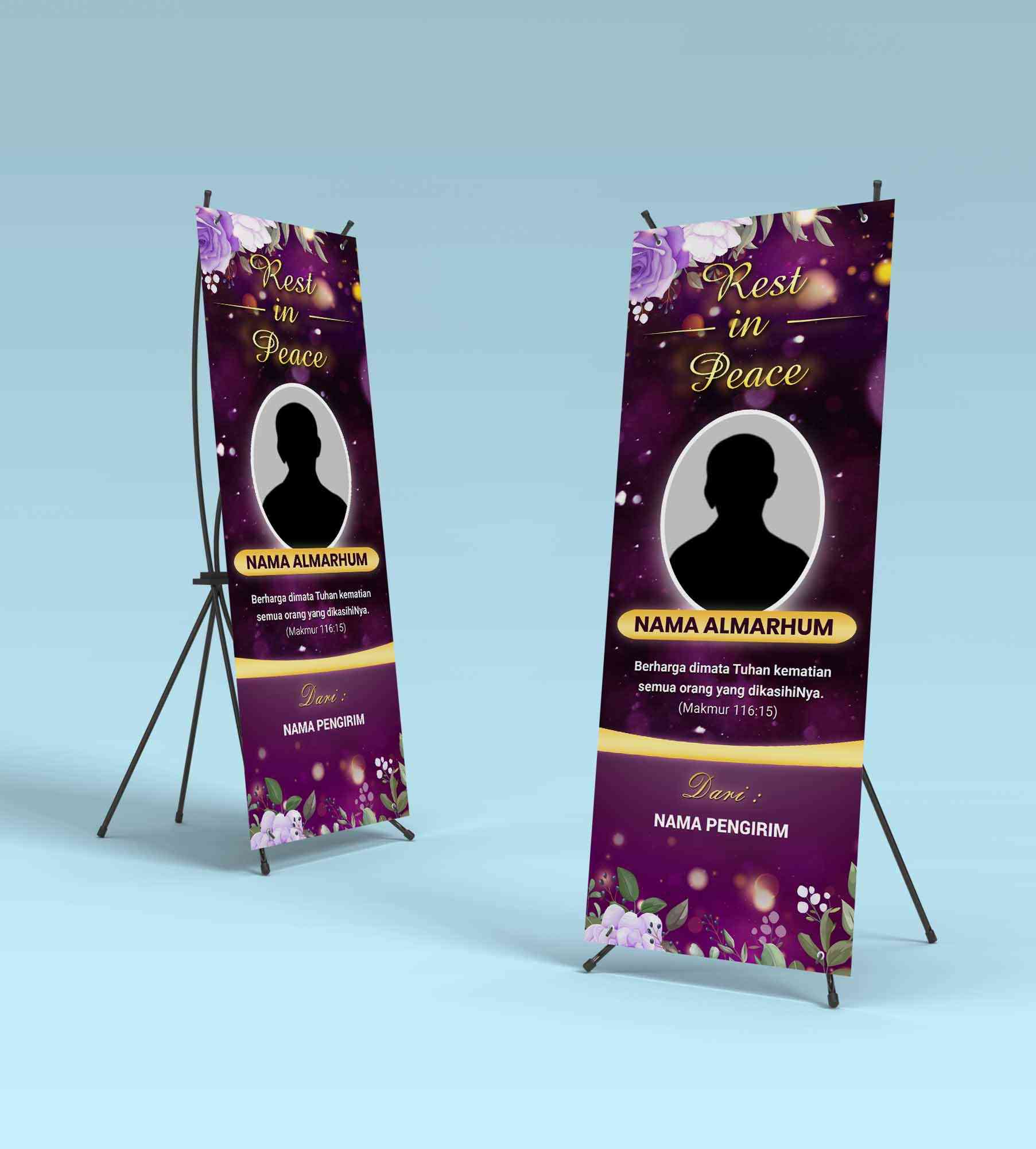 standing banner,turut berduka cita,rip,almarhum/almarhuma