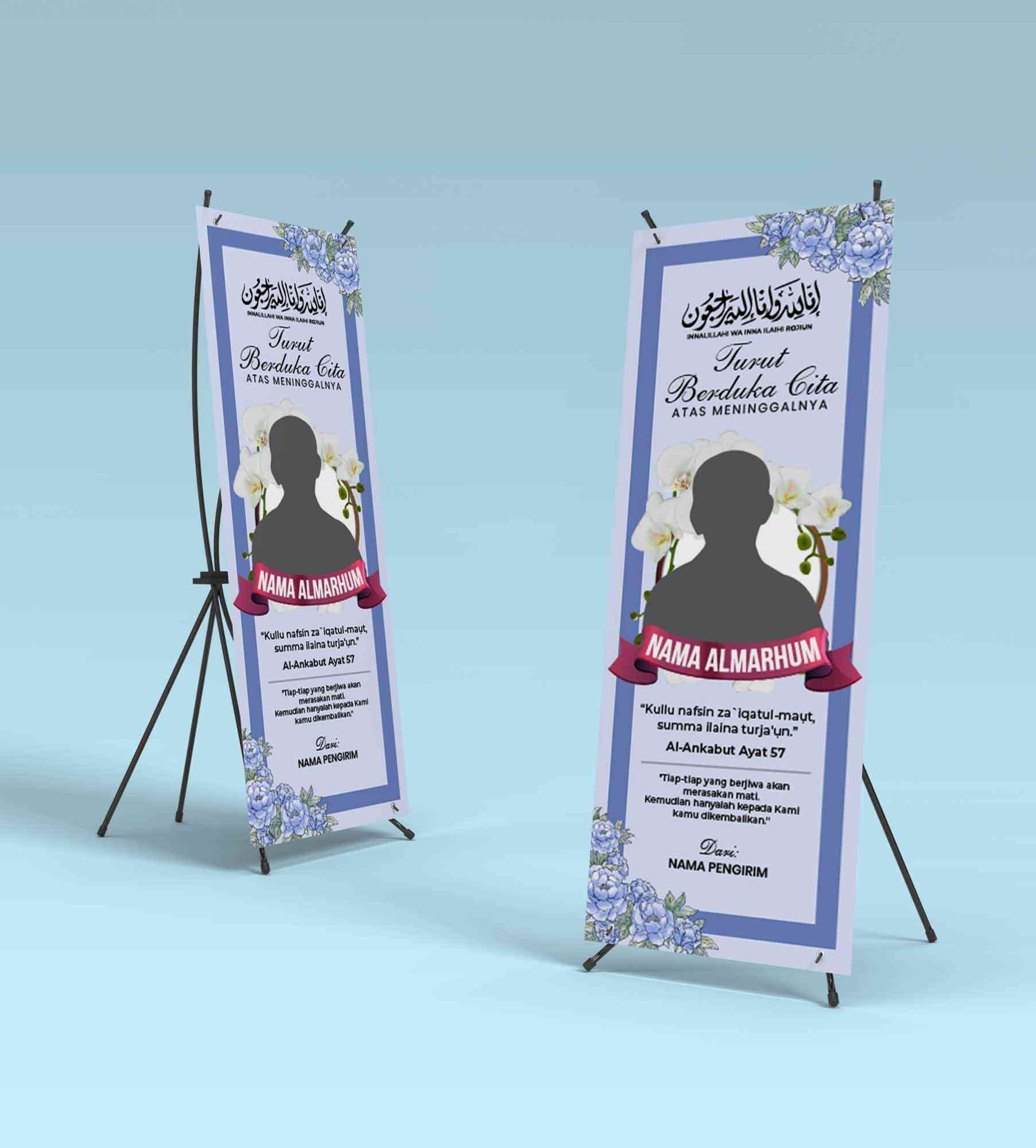 standing banner,turut berduka cita,rip,almarhum/almarhuma