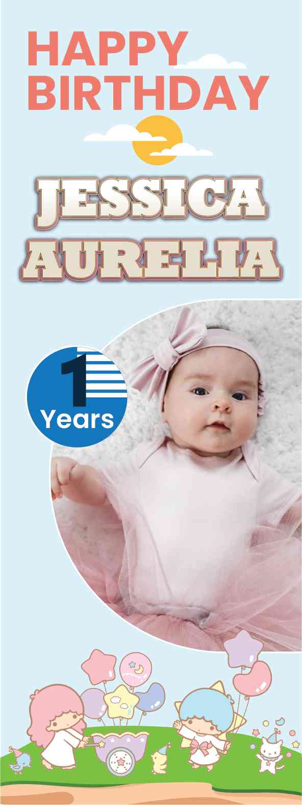 Dengan desain yang memikat dan detail yang teliti, standing banner ini menjadi pusat perhatian dalam pesta ulang tahun Anda, menciptakan suasana yang penuh kegembiraan dan keceriaan. Rayakan hari istimewa Anda dengan nuansa magis Little Twin Stars dan buatlah momen indah yang akan dikenang selamanya!
