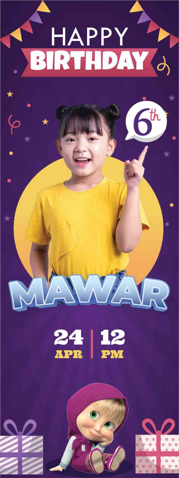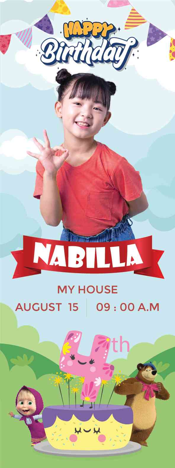 Banner ini adalah panggilan kepada semua penggemar Masha and the Bear untuk merayakan ulang tahun dengan keceriaan, kehangatan, dan petualangan yang tak terlupakan!"