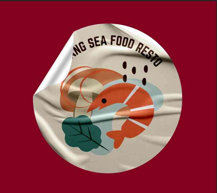 Stiker ini dirancang dengan gaya flat yang modern namun tetap playful, menampilkan ilustrasi udang, jamur, dan daun segar yang membentuk visual harmon...