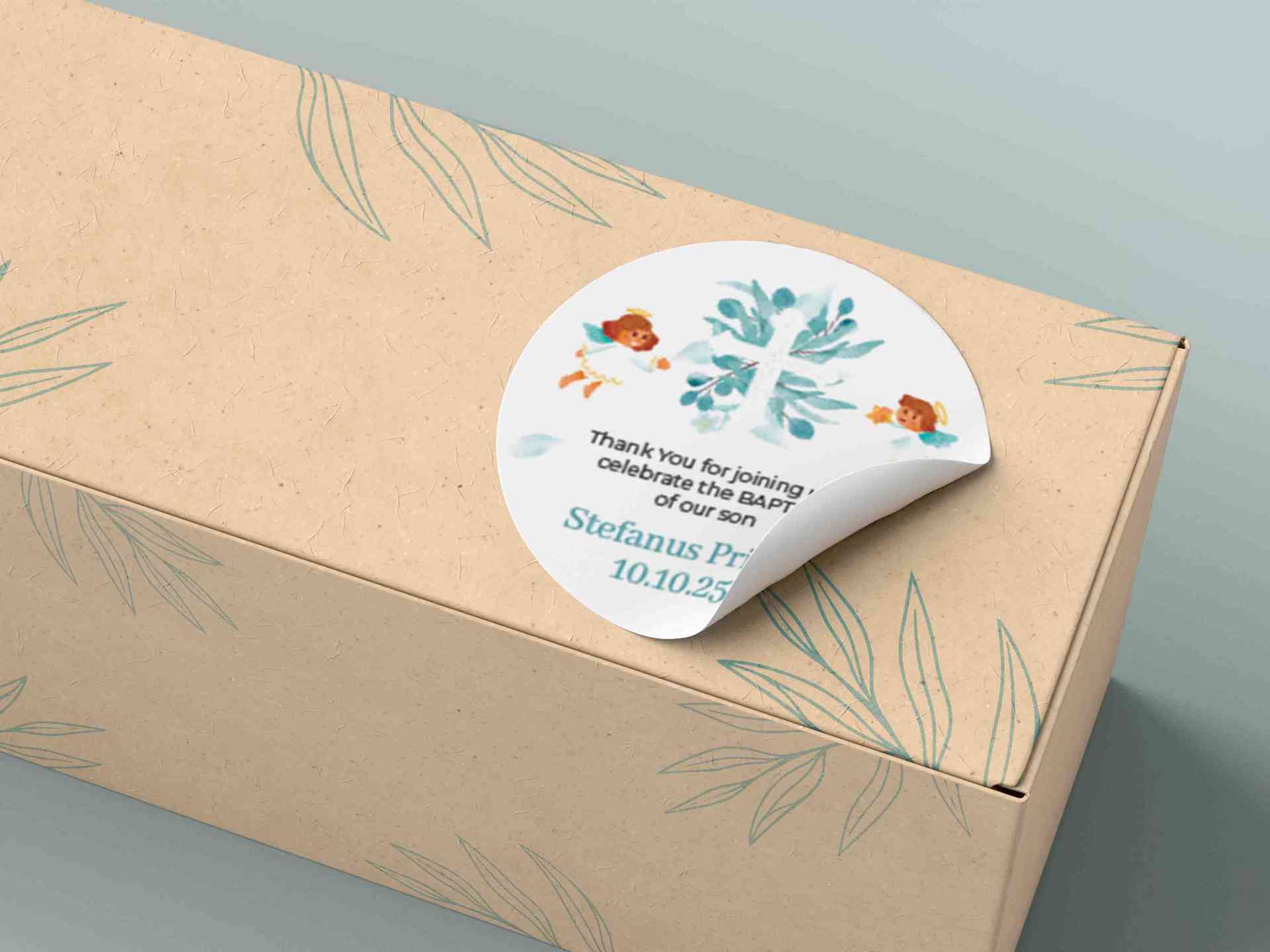 Stiker ini dirancang dengan tampilan yang lembut, religius, dan penuh kasih, cocok untuk momen spesial baptisan anak laki-laki. Desain menampilkan ilu...