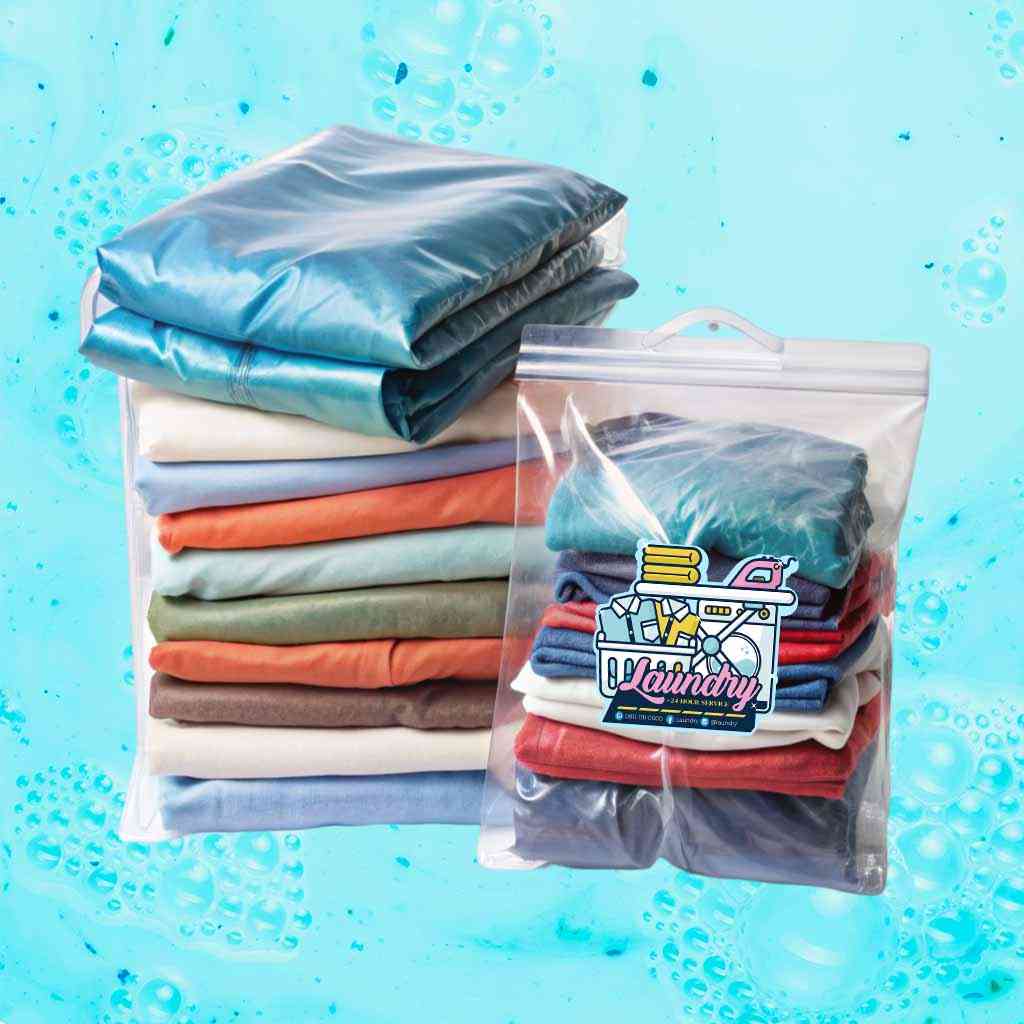 Stiker branding laundry ini didesain dengan ilustrasi alat cuci seperti setrika, mesin cuci, gantungan, dan tumpukan pakaian yang disusun dalam gaya k...