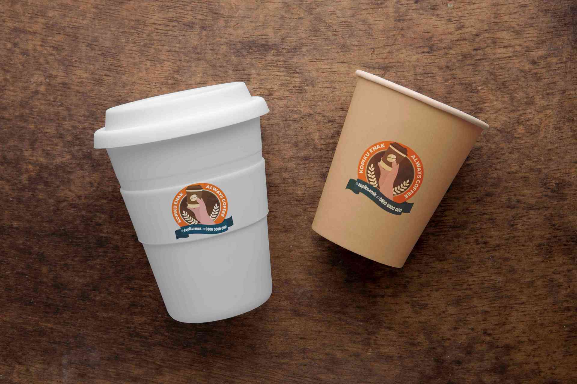 Stiker ini memiliki tampilan yang playful dan ramah dengan bentuk menyerupai awan berlapis serta ilustrasi cangkir merah muda berisi krim di ujung kanan. Teks “Coffeeku” ditulis dengan font elegan bergaya tulisan tangan, disusul tagline “with the best taste” yang menggunakan warna merah untuk menonjolkan pesan utama. Elemen tambahan seperti kontak nomor dan tulisan “ESTD 2025” membuatnya cocok untuk kebutuhan branding UMKM kopi atau café kekinian. Stiker ini menambah kesan ceria dan personal saat ditempel pada cup putih maupun kraft, membuat produk terlihat lebih bersahabat dan menarik perhatian.