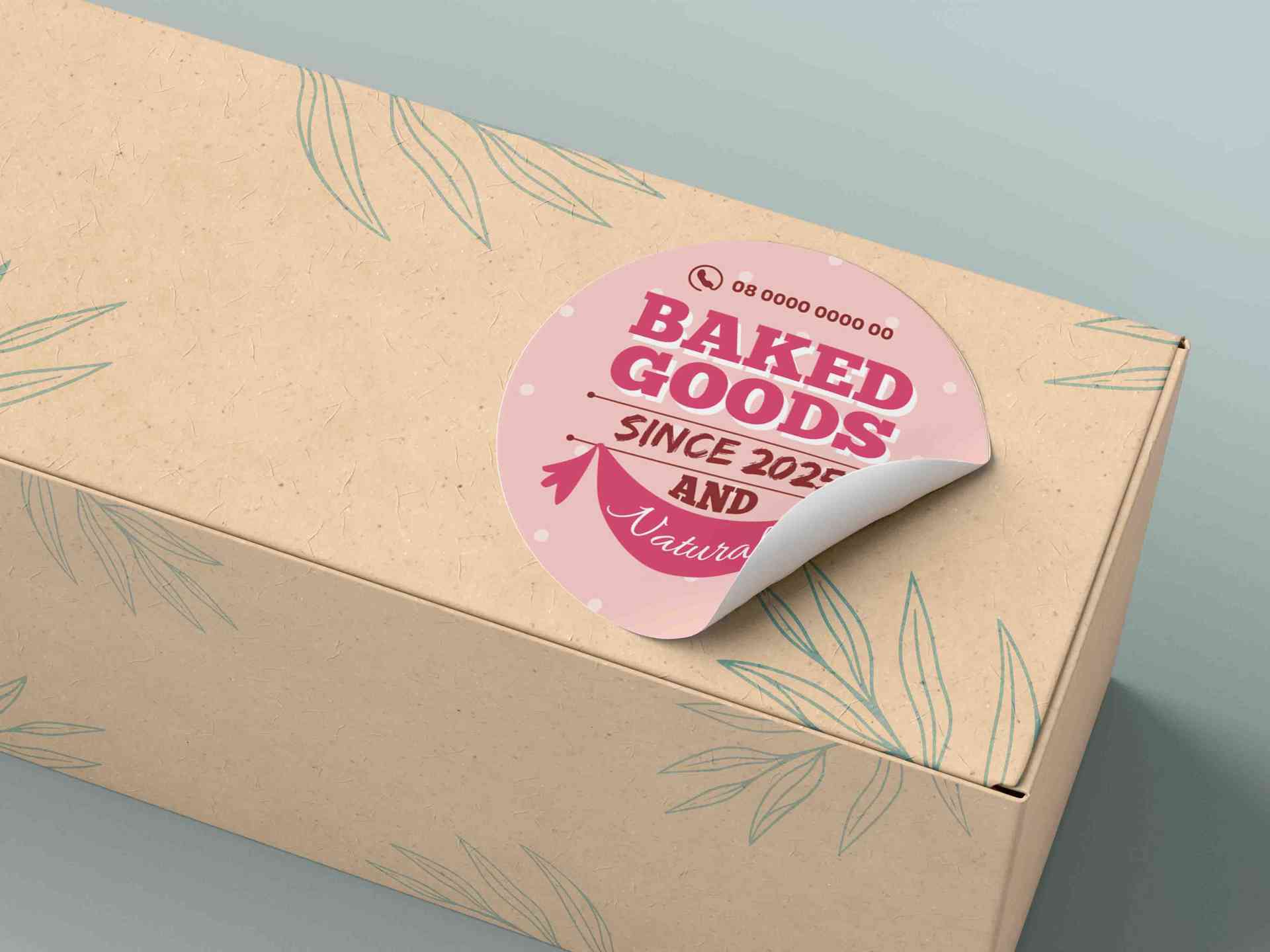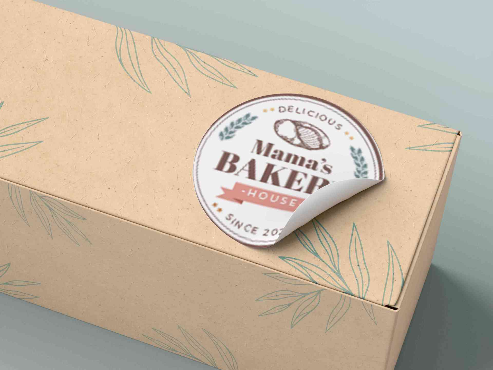 Stiker bulat ini menampilkan desain vintage yang hangat dan elegan dengan dominasi warna coklat tua dan aksen merah bata. Teks “Mama’s BAKERY HOUSE” d...