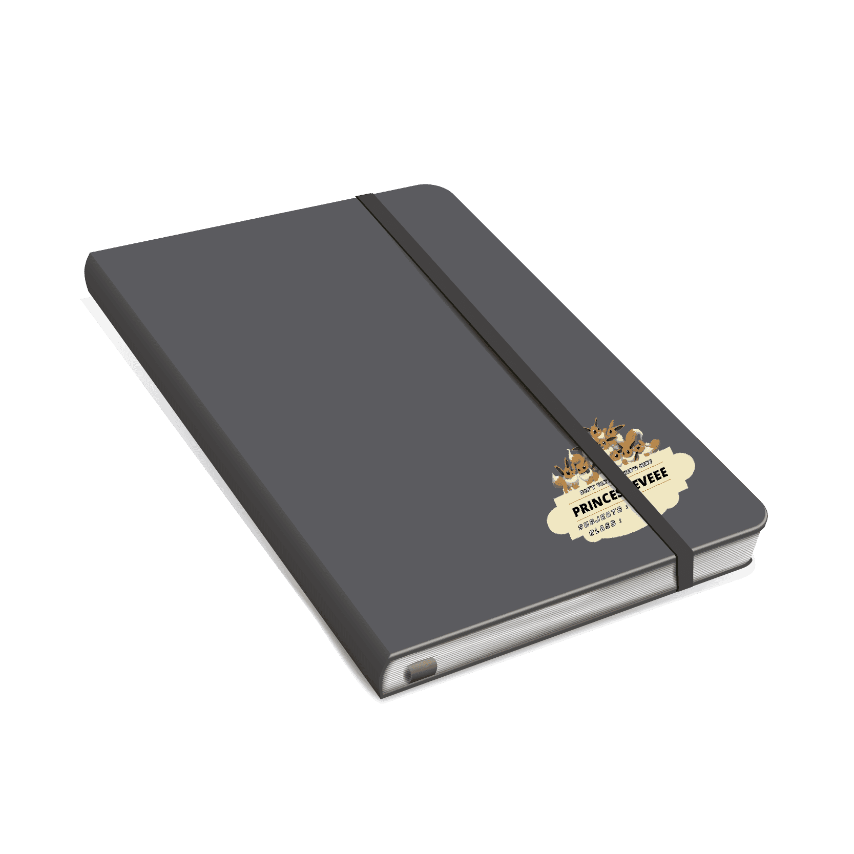 Stiker pada notebook ini menampilkan karakter Eevee yang lucu dengan aksesori mahkota kecil berwarna merah muda, memberikan kesan manis dan menggemaskan. Stiker berbentuk label dengan tulisan PRINCESS EVEEE ini ditempatkan rapi di sudut bawah notebook berwarna hitam, menambah aksen personal dan stylish pada buku catatan. Desain ini cocok untuk para pecinta karakter imut, pelajar, dan mereka yang ingin mempercantik perlengkapan sekolah atau kerja dengan sentuhan karakter favorit.