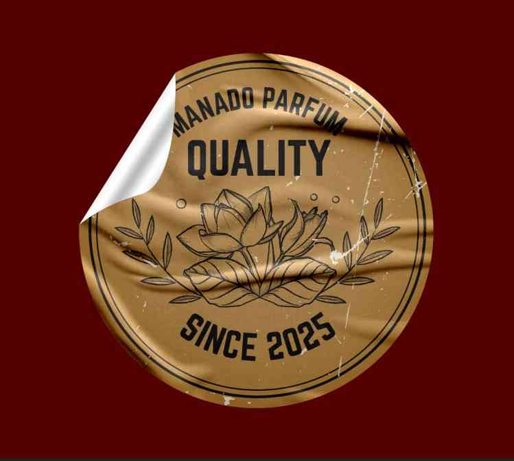 tiker lingkaran bergaya vintage dengan warna coklat emas yang memberi kesan klasik dan eksklusif. Mengusung tulisan “Manado Parfum QUALITY” dan “Since...