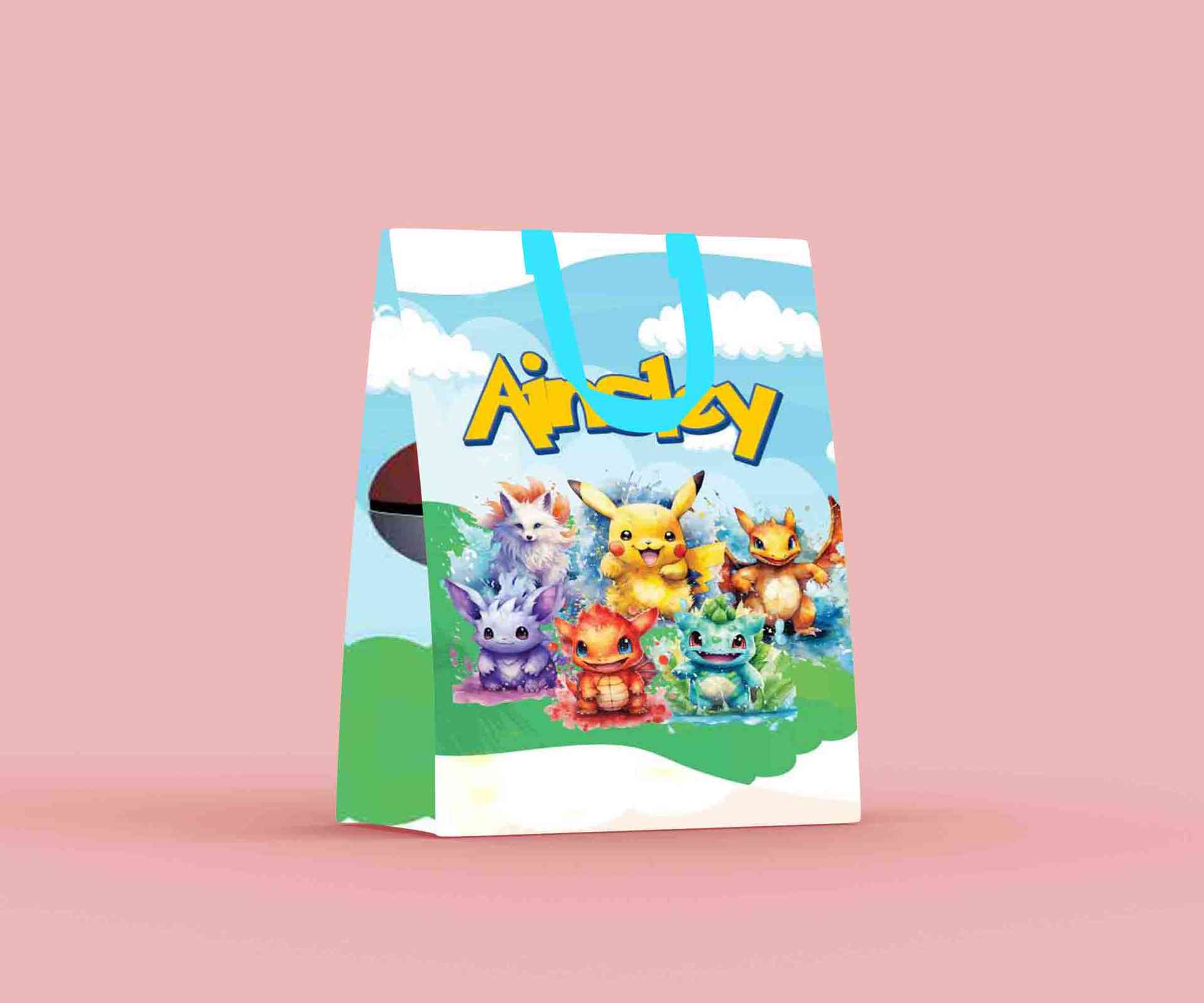 Desain paper bag ini mengusung tema ulang tahun anak yang ceria dan penuh warna dengan karakter-karakter lucu dari dunia Pokémon. Bagian depan menampi...