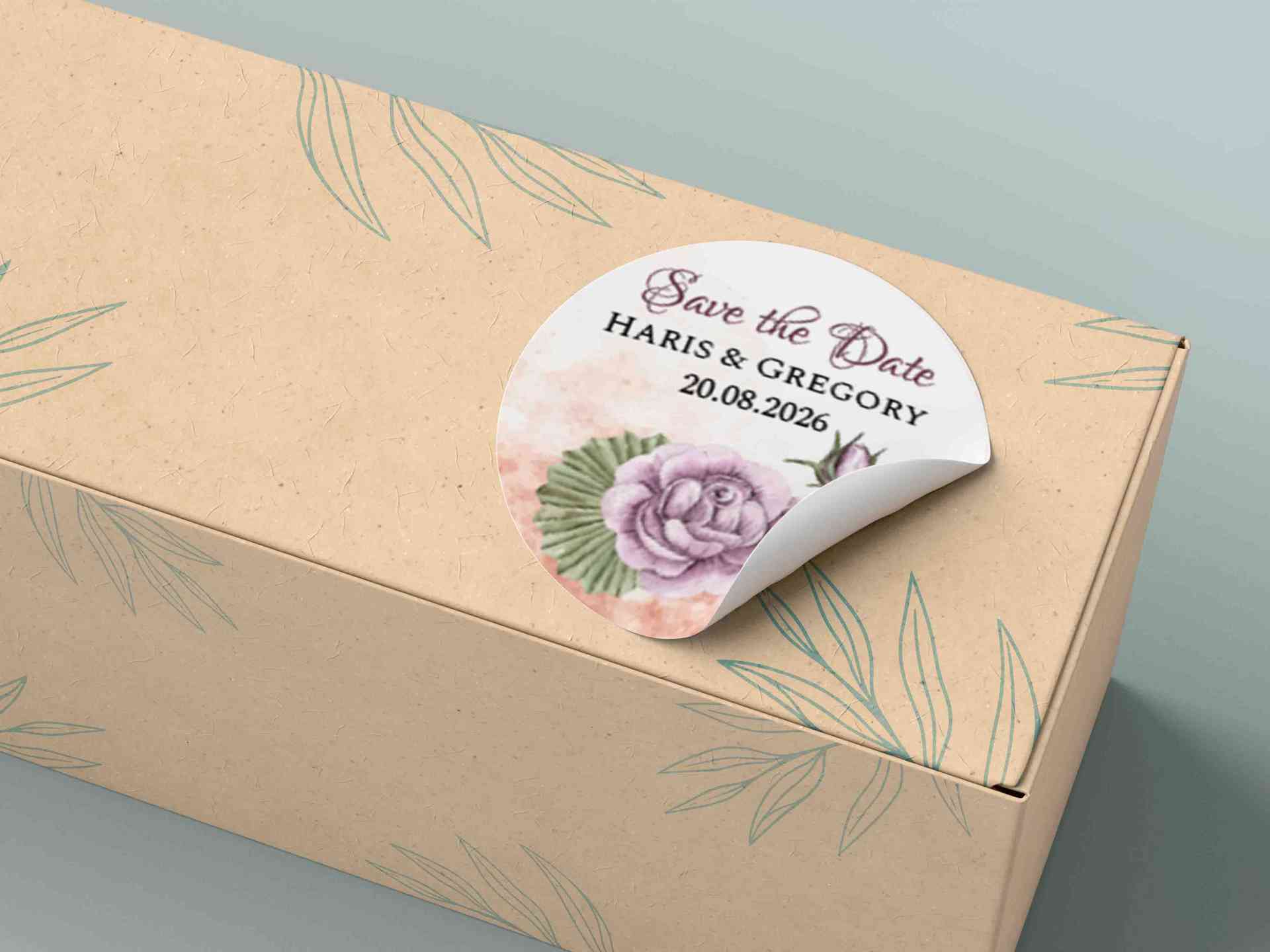 Stiker bulat ini menghadirkan kesan elegan dan romantis melalui ilustrasi bunga bergaya watercolor berwarna ungu lembut yang tampil menawan di sisi ka...
