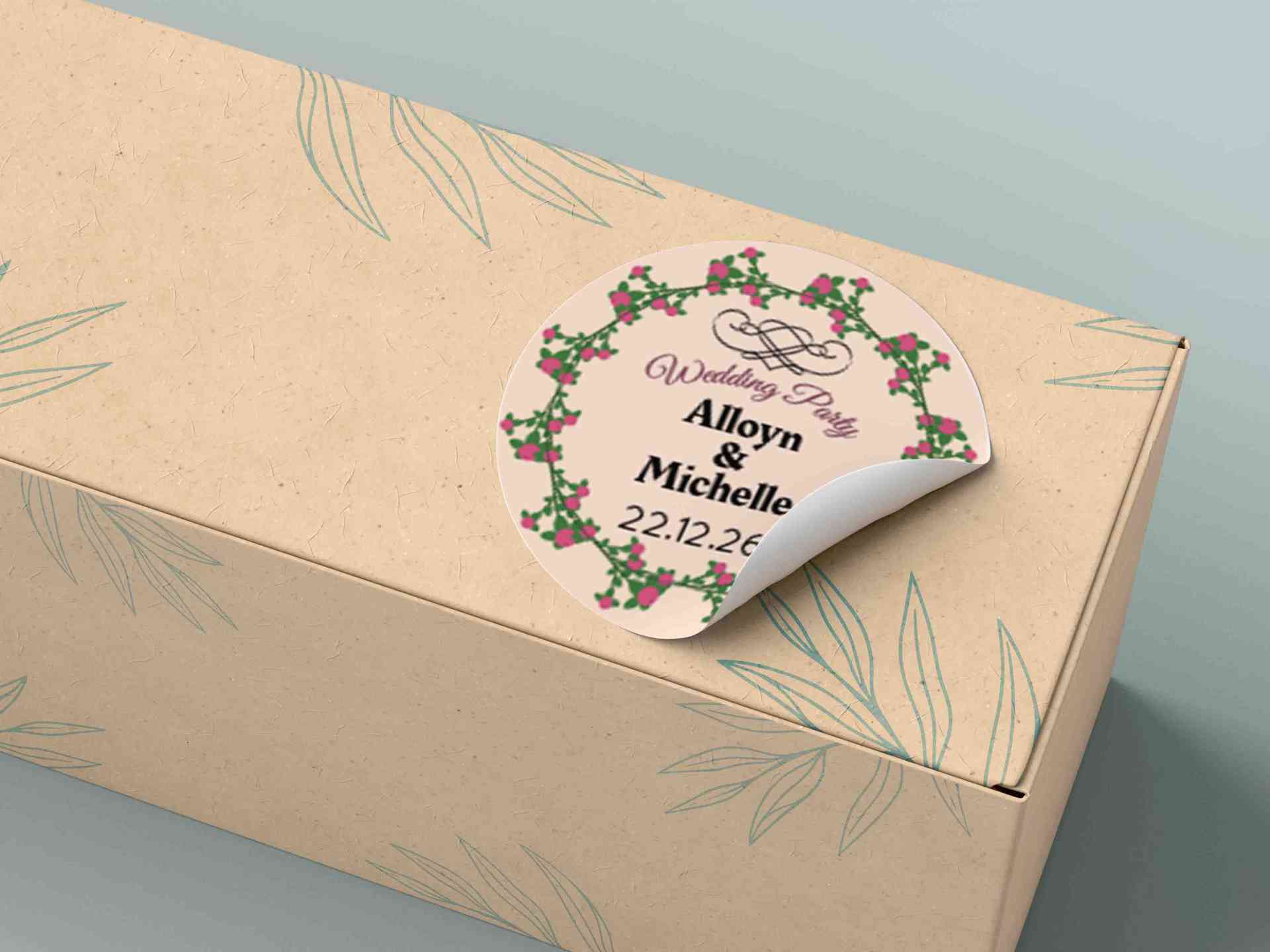 Desain ini sangat cocok untuk pernikahan bertema boho, tropikal, atau rustic modern, serta bisa diaplikasikan pada undangan, kemasan hampers, atau souvenir. Sentuhan seni lukis dan tipografi kaligrafi menjadikan stiker ini terlihat klasik namun tetap kekinian, sempurna untuk momen spesial yang berkesan.