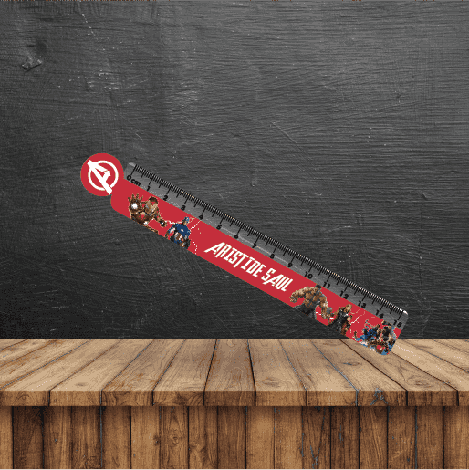 Penggaris Avengers Merah berbentuk persegi panjang dengan ukuran standar, menampilkan karakter ikonik Avengers seperti Iron Man, Captain America, Hulk...