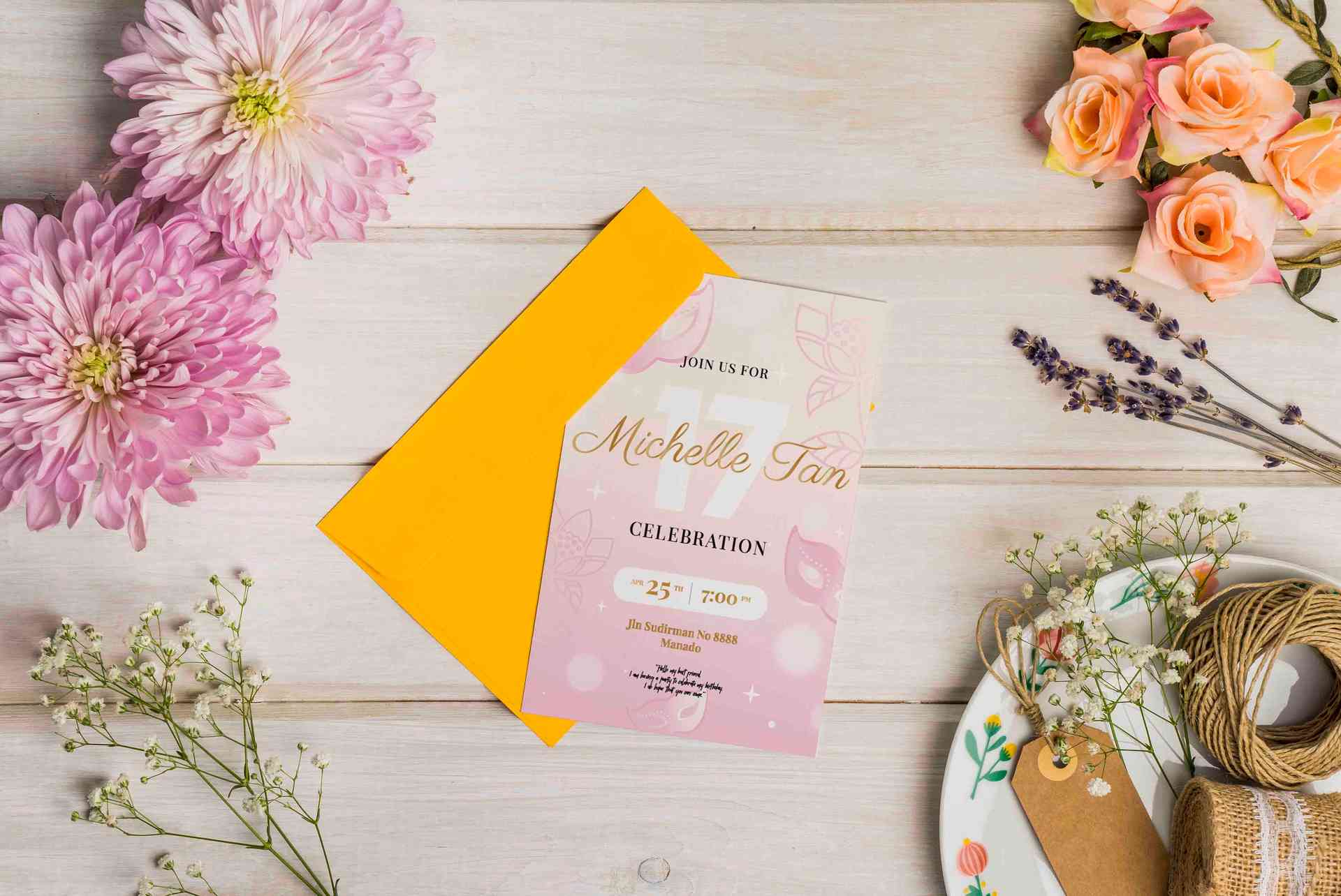 Undangan sweet seventeen dengan warna soft biasanya menampilkan desain yang elegan dan girly, dengan palet warna pastel yang lembut seperti peach, min...