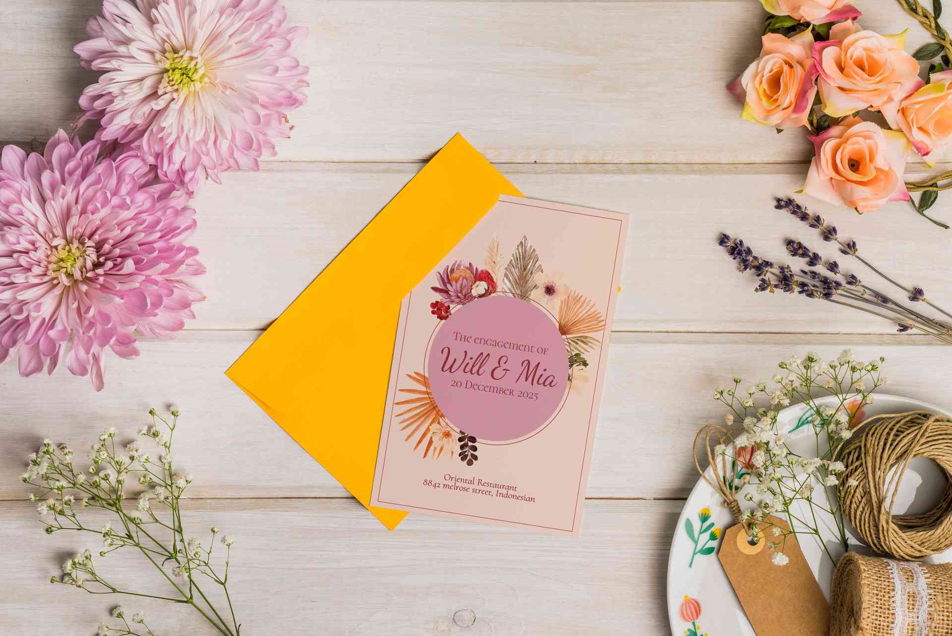 Desain undangan ini menampilkan gaya elegan dan floral yang sangat cocok untuk acara pertunangan atau pernikahan yang intimate dan romantis. Dengan la...