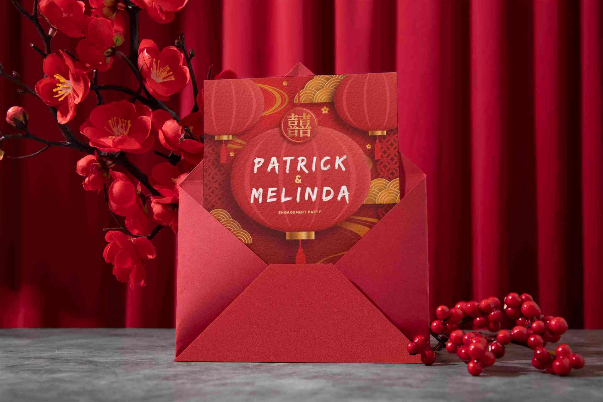 Rayakan momen pertunangan penuh cinta dengan undangan bertema Oriental modern ini! Desainnya mengusung warna merah dan emas yang melambangkan keberunt...
