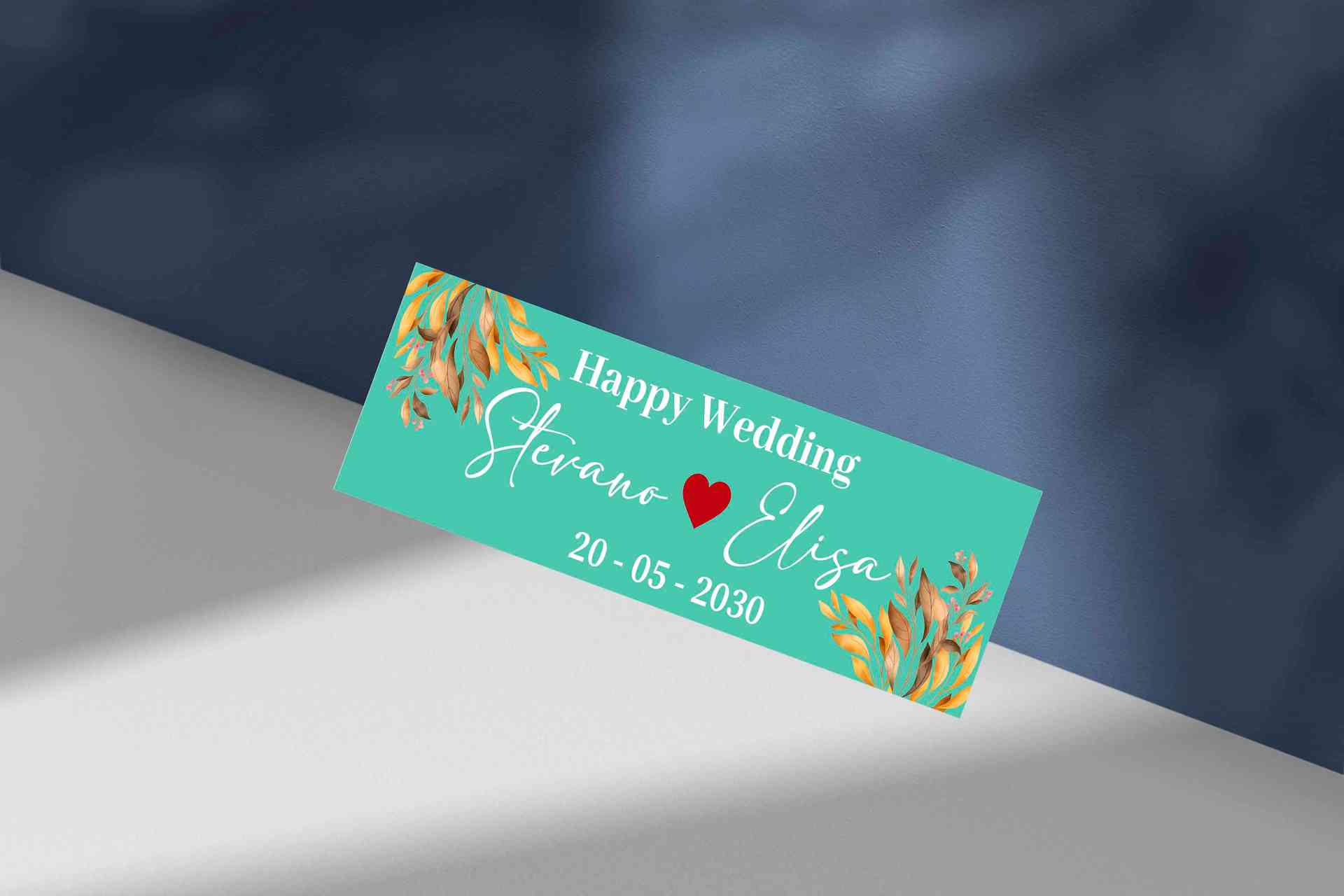 Plat pernikahan ini tampil mewah dengan ornamen bunga emas di kedua sisi, menyatu dengan latar putih bersih yang memberikan kesan formal. Cocok untuk...