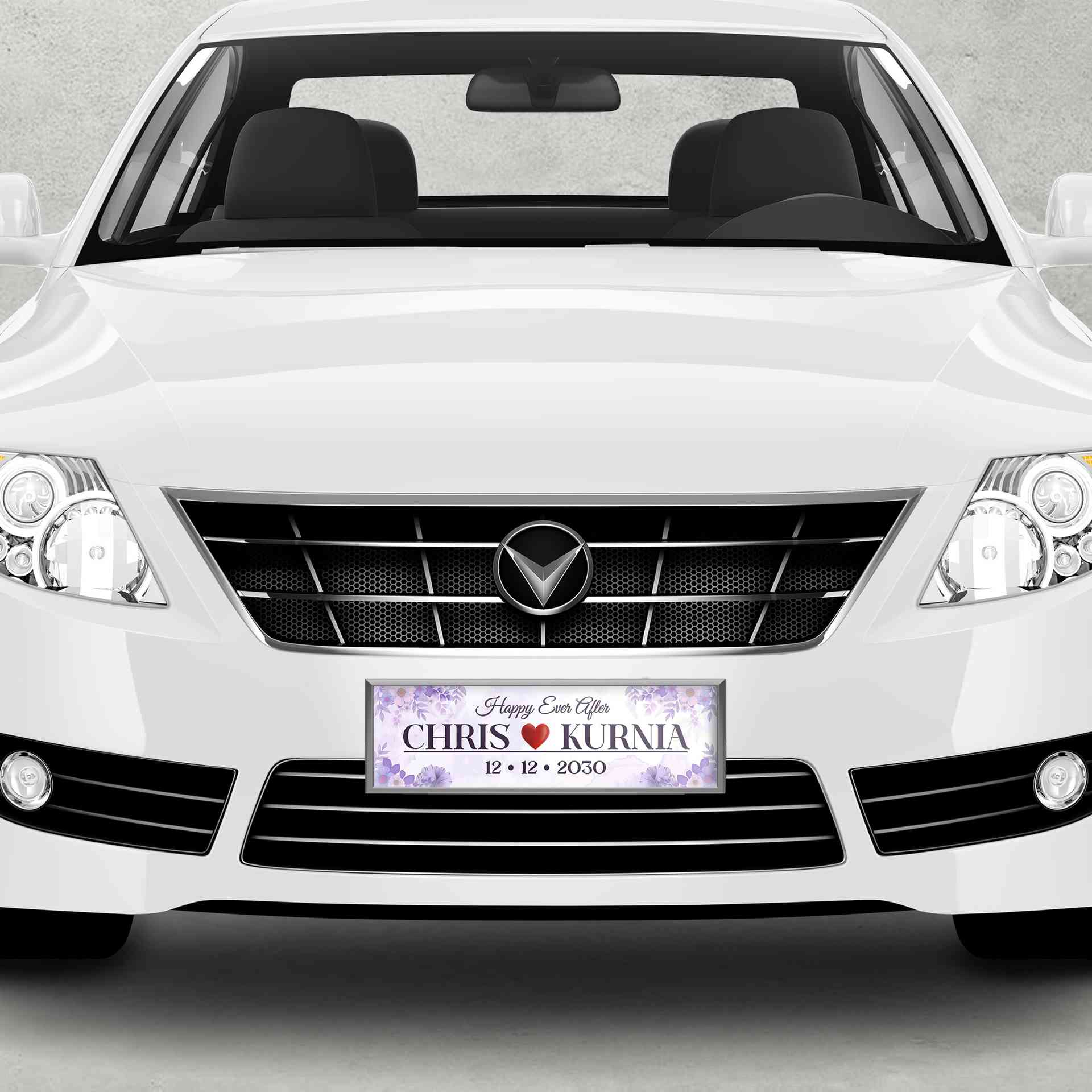 Dengan latar pink lembut dan dedaunan dekoratif di kedua sisi, plat ini terlihat manis dan feminin. Cocok sebagai pemanis dalam dekorasi pernikahan in...