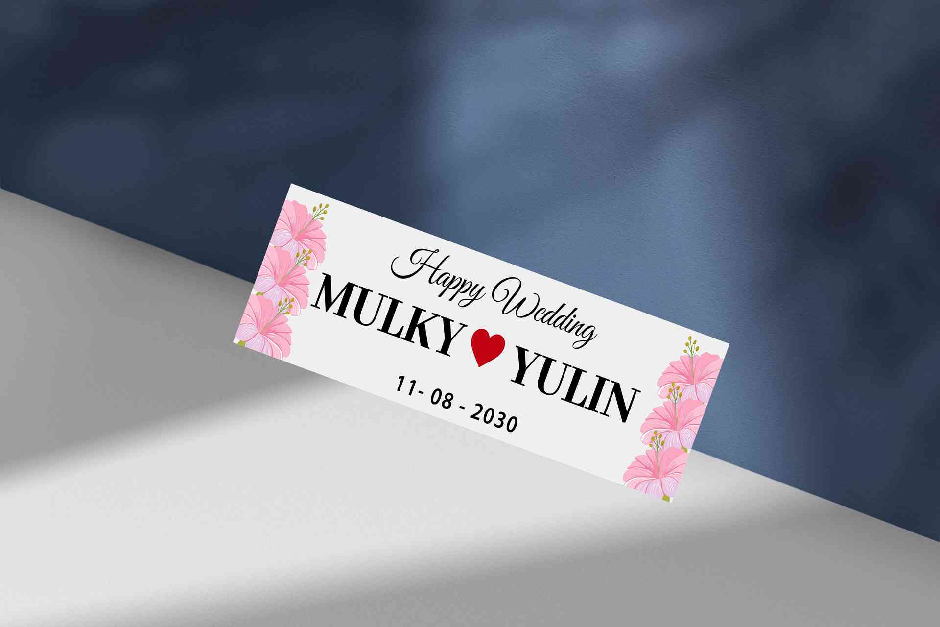 Desain plat pernikahan ini menampilkan gradasi warna biru ke ungu yang memancarkan ketenangan dan kesan sakral. Dengan tulisan happy wedding yang tega...
