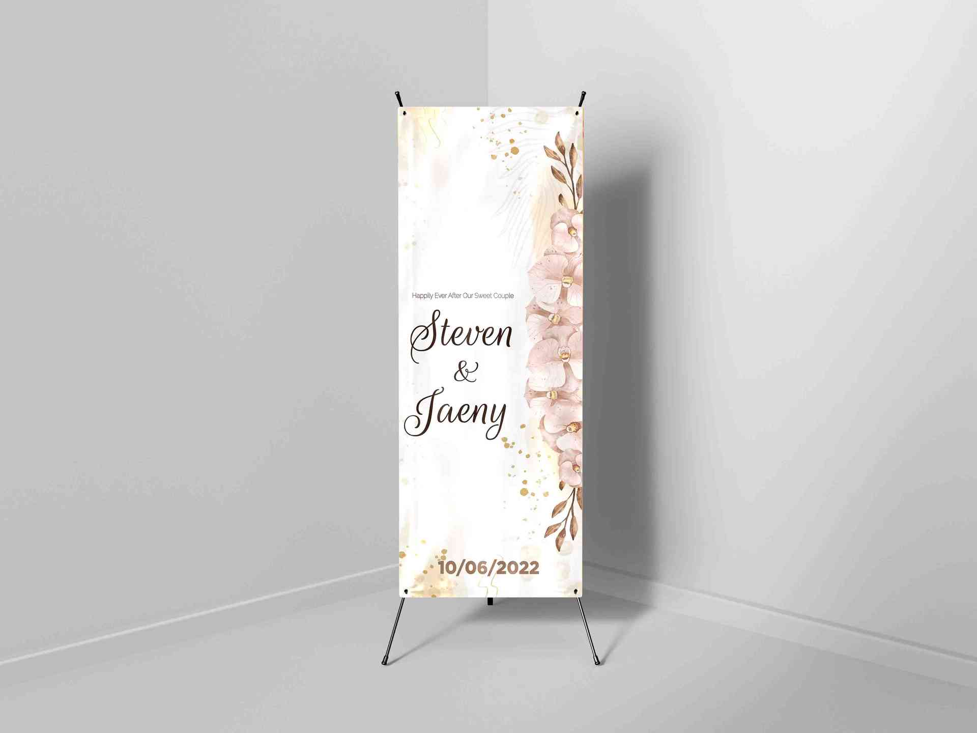 Desain x-banner ini mengusung konsep minimalis elegan dengan latar putih bersih yang memberikan kesan anggun dan modern. Sisi kanan dihiasi rangkaian...